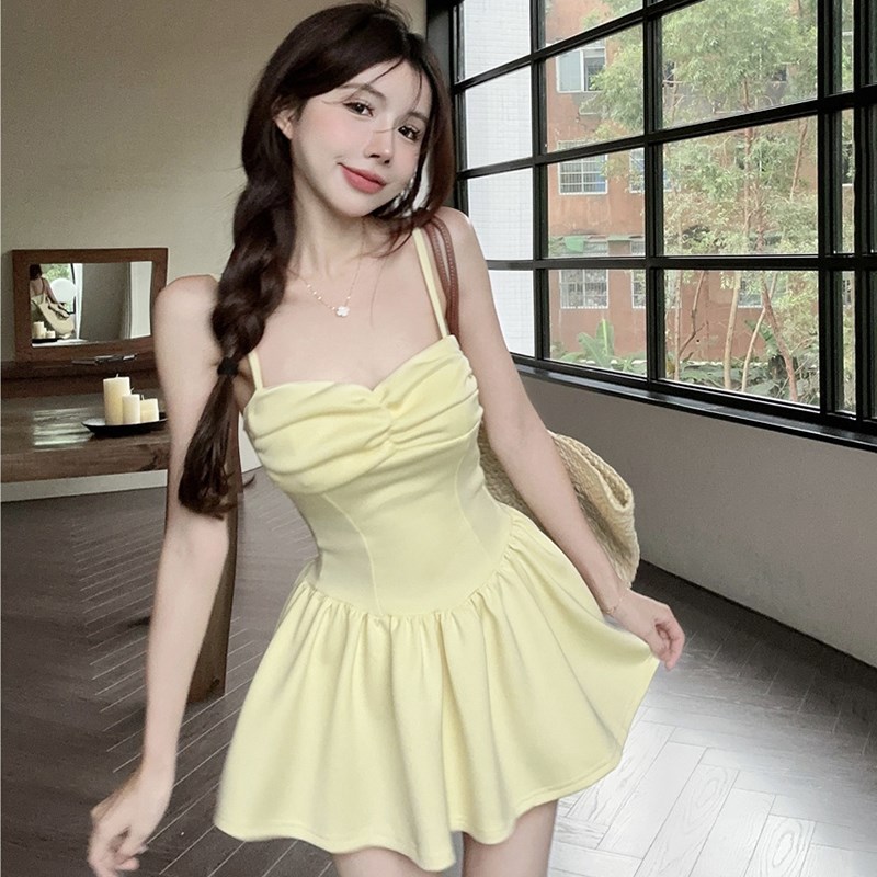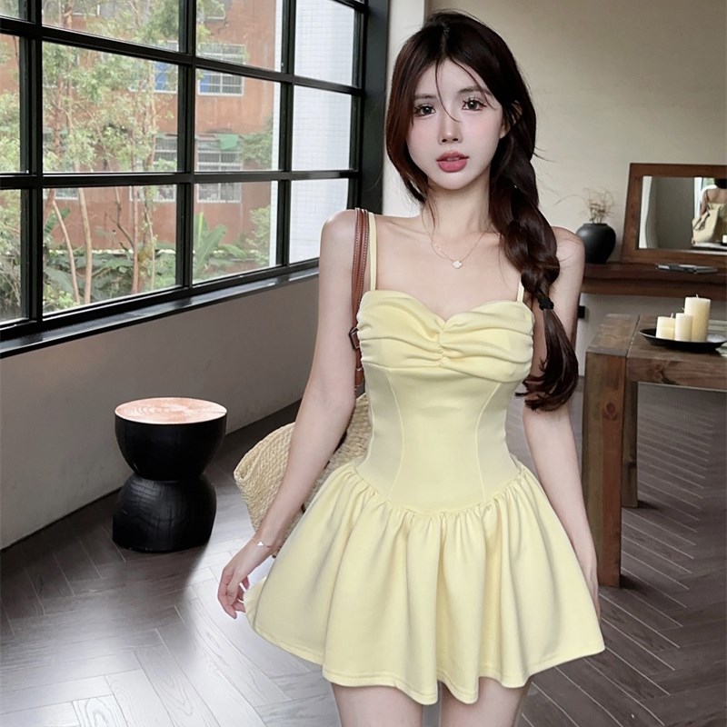纯欲小妈性感吊带连衣裙女春夏多巴胺一字肩鱼骨蓬蓬短裙生日礼服