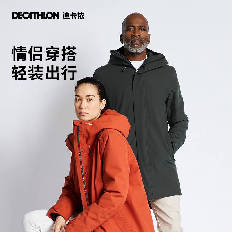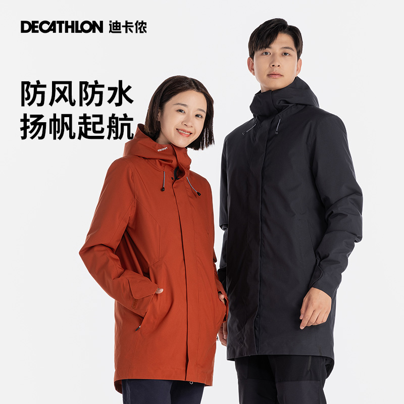 迪卡侬航海夹克户外防风防水冲锋外套秋冬情侣保暖新款登山服IVB1
