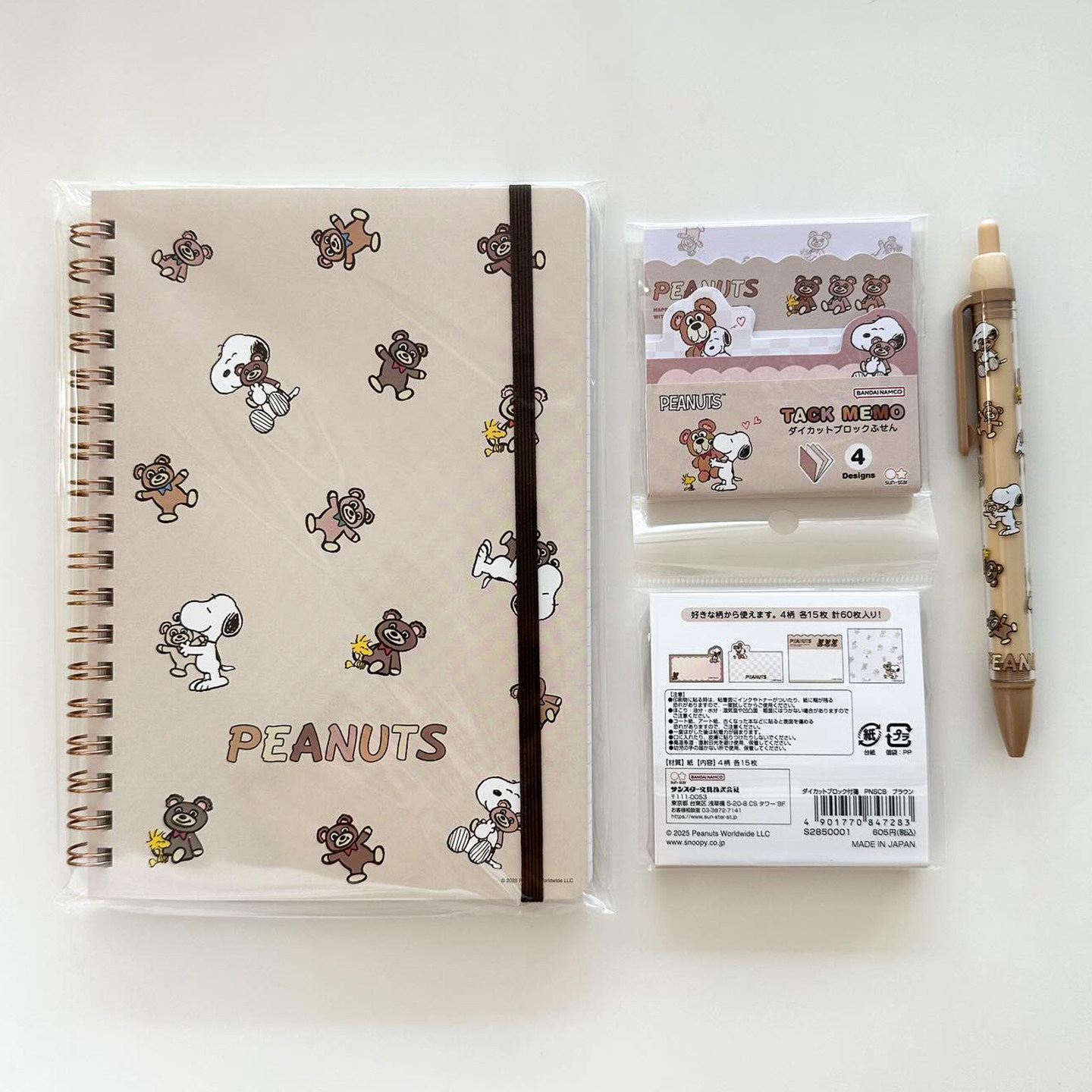 日本sunstar史努比&cuddly系列自动铅笔文件夹付笺便签本圆珠笔