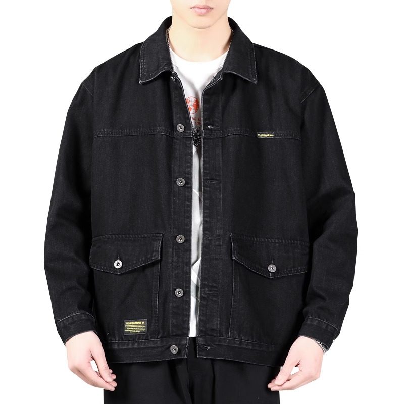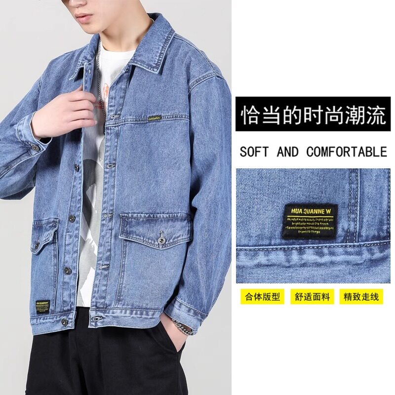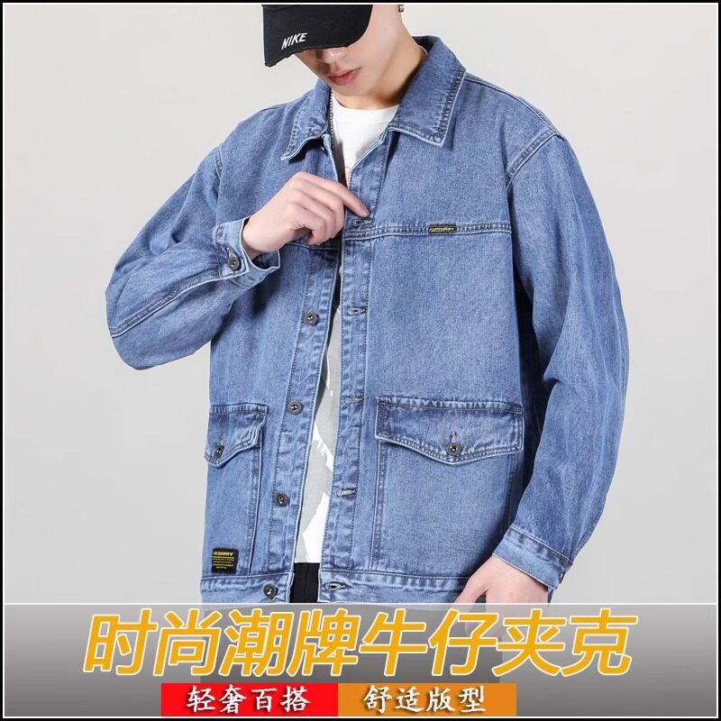 水洗牛仔夹克外套男士大码宽松春秋季高端浅色牛仔衣工装休闲上衣