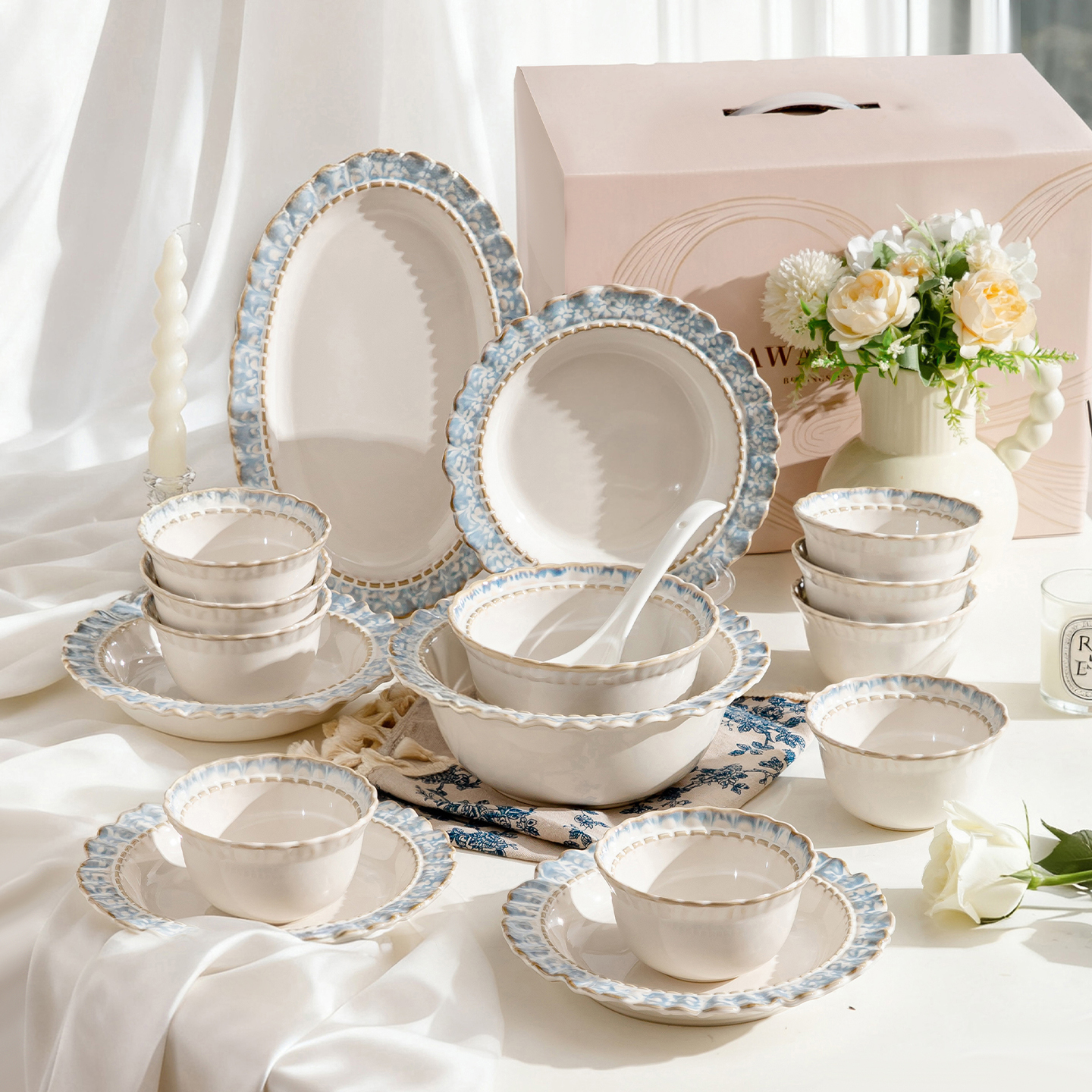 川岛屋烟蓝釉下彩碗碟套装家用陶瓷碗盘餐具新婚结婚乔迁新居礼物