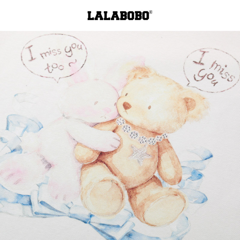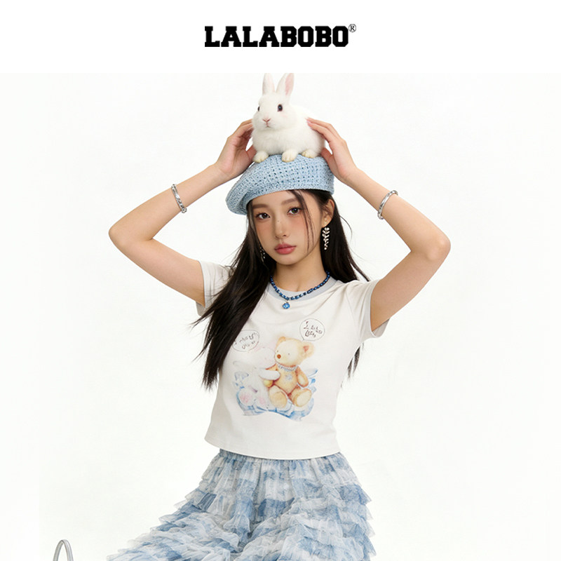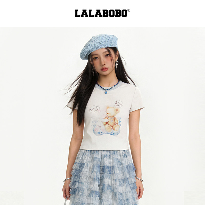 【商场同款】LALABOBO26年新款正肩短袖可爱小熊印花短款修身T恤