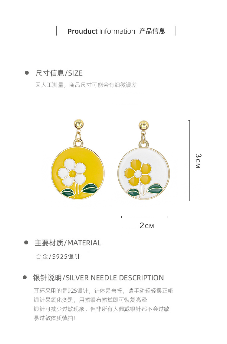 珐琅彩雏菊小花朵不对称耳环925银针学生少女甜美淡黄青春耳饰夹