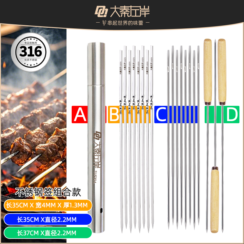 新品316烧烤签不锈钢圆签40cm烧烤用具烤针羊肉串铁签烤肉签串针