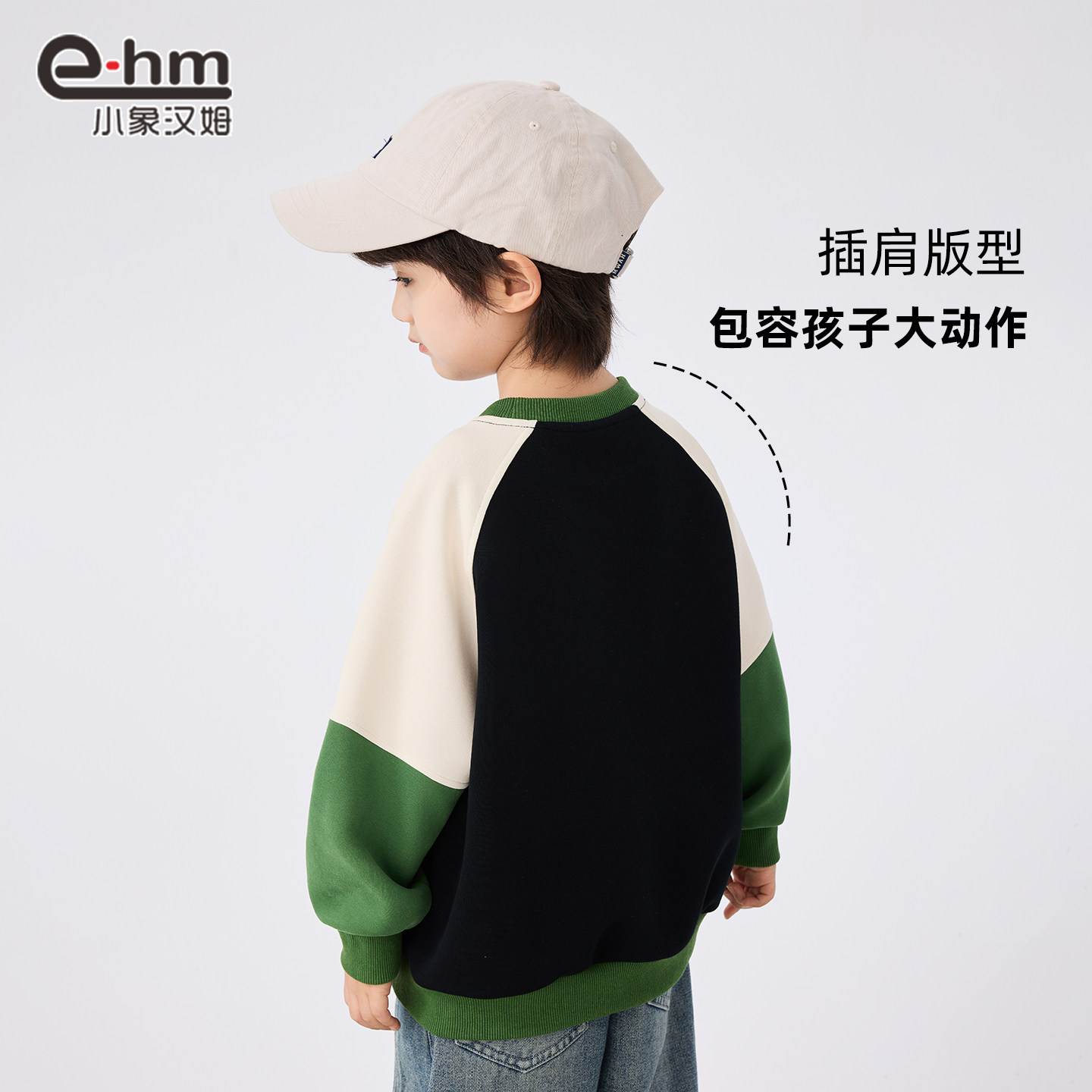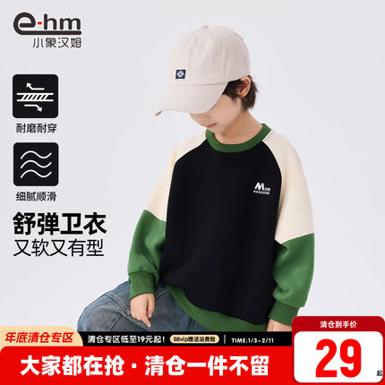 小象汉姆童装男童卫衣拼接袖儿童圆领上衣春秋款2025秋装新品洋气