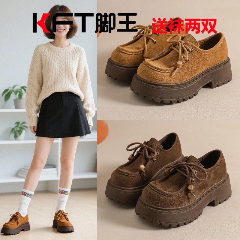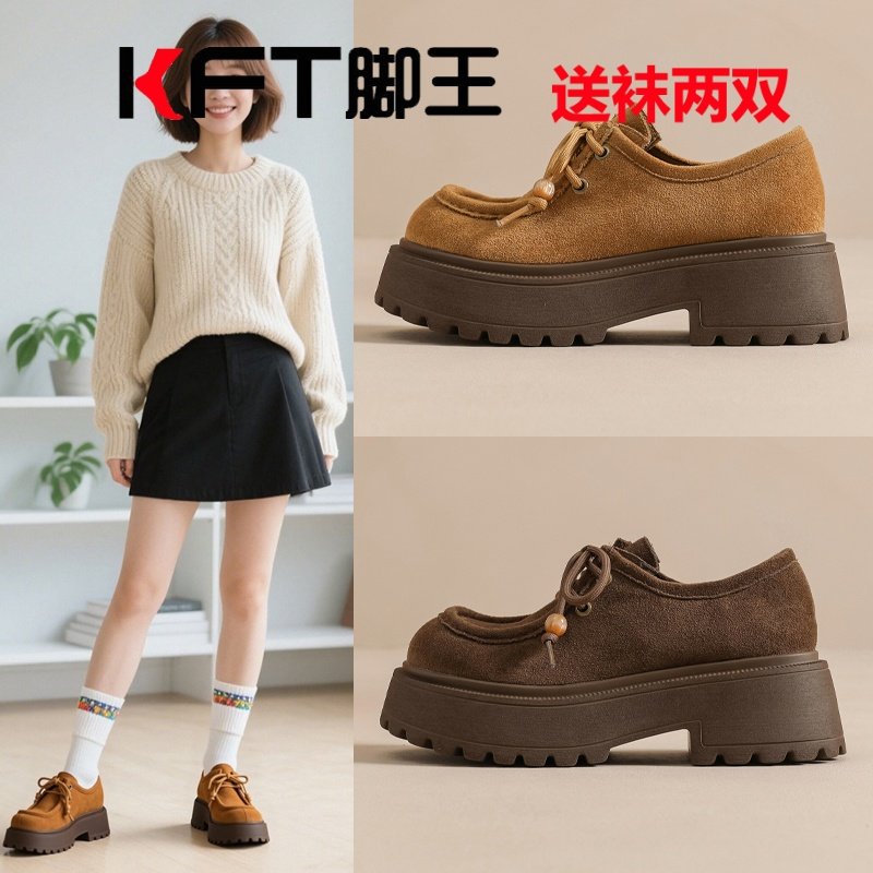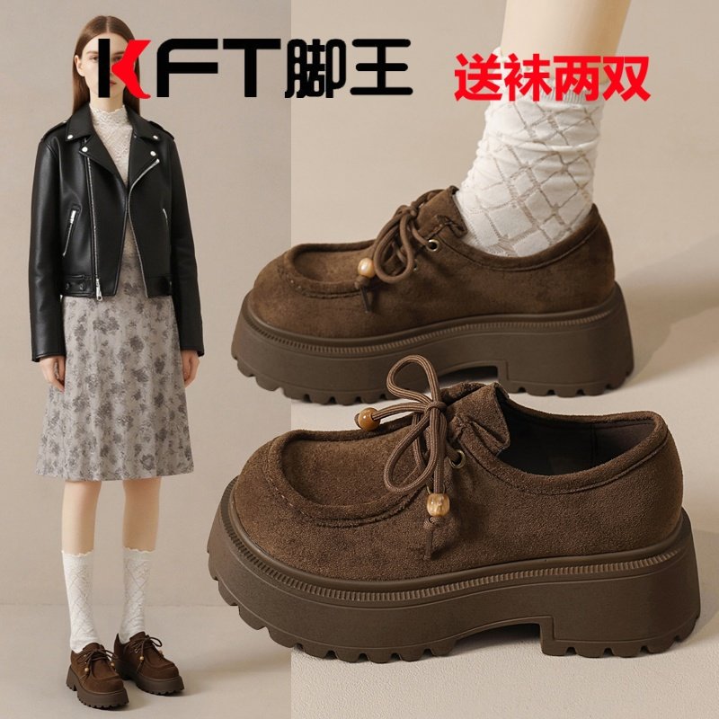 KFT慢走脚王网红爆款女鞋秋冬德训圆头系带时装靴复古勃肯小皮鞋