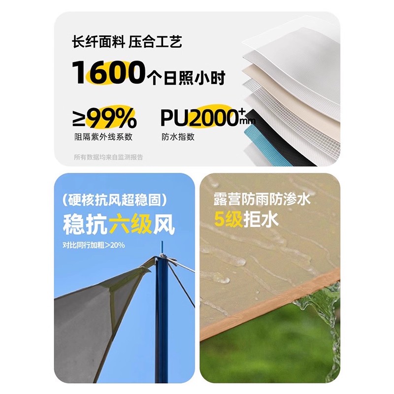 黑胶天幕露营帐篷户外装备桌椅野营六件套防晒防雨遮阳棚布免搭建