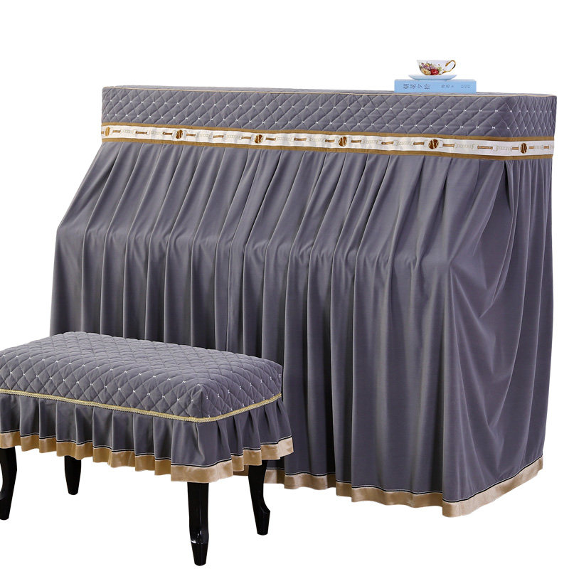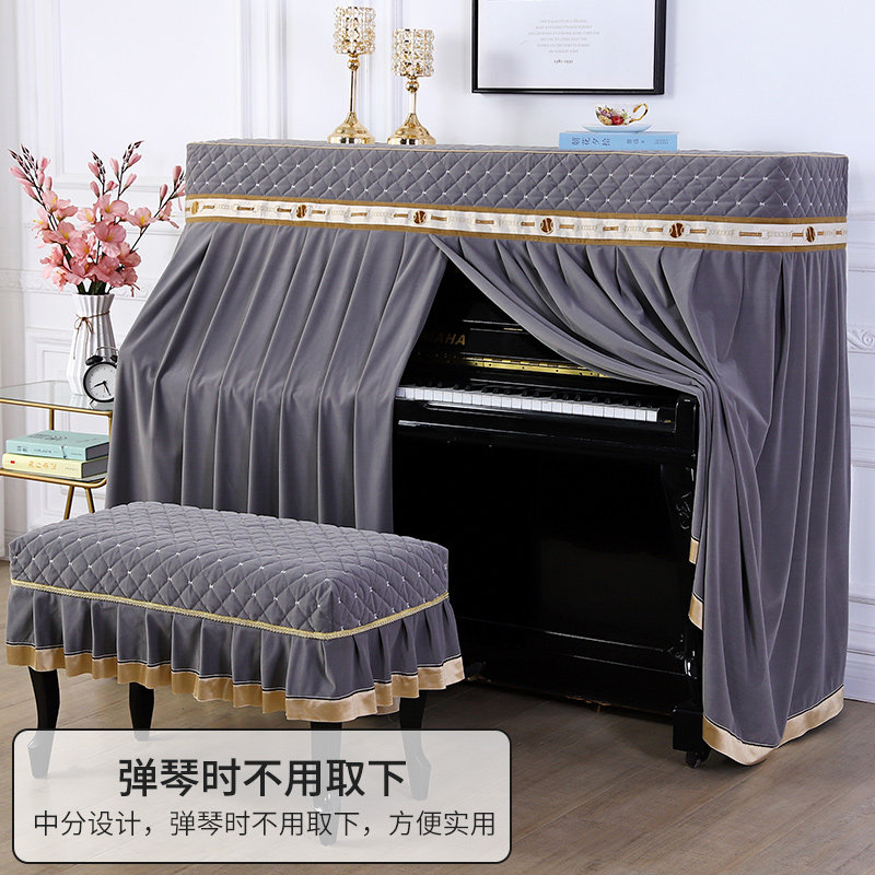 加厚钢琴罩欧式典雅钢琴全罩布艺中开钢琴套弹琴不取防尘罩琴凳罩