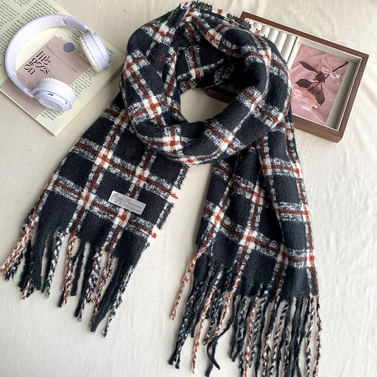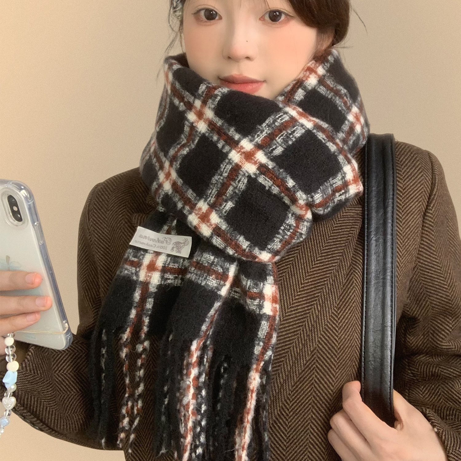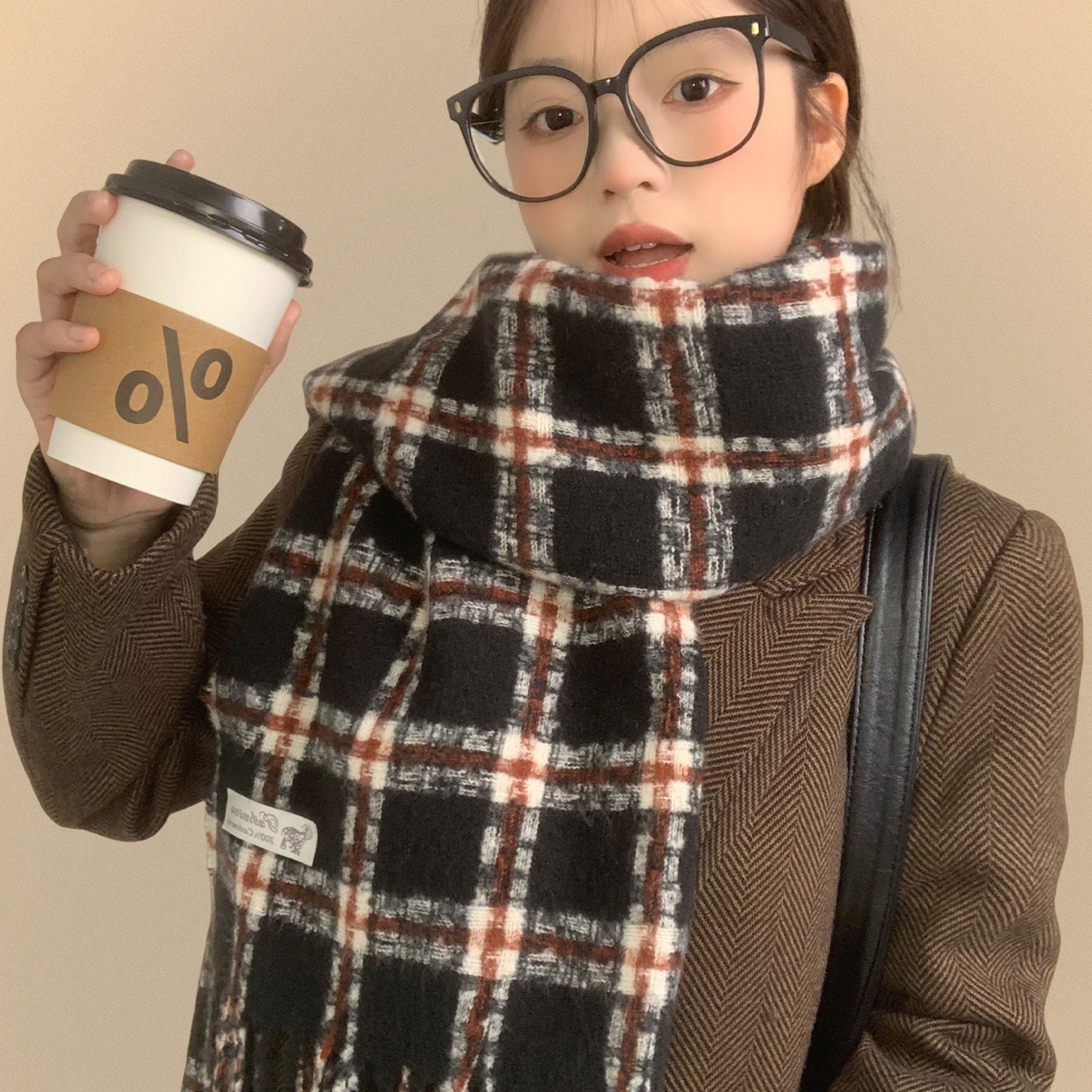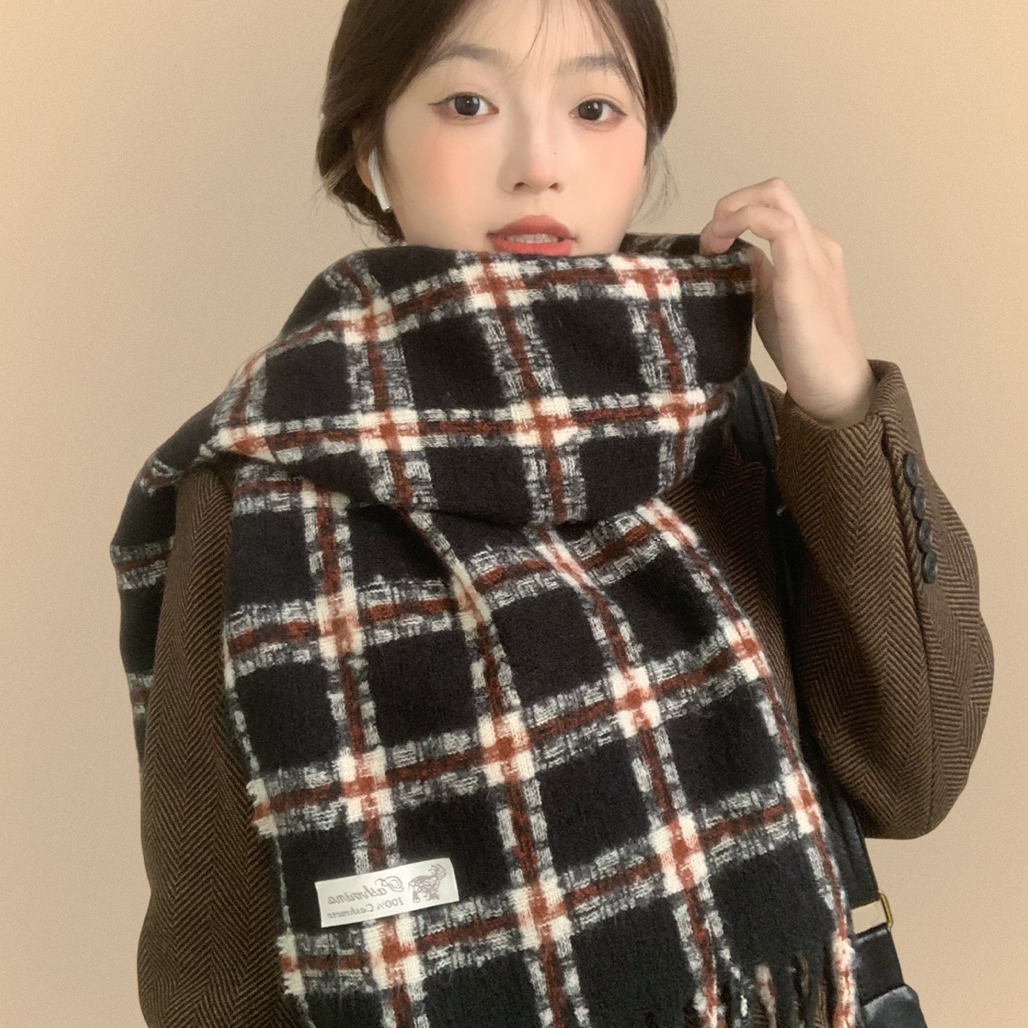 复古格子围巾女冬季韩系氛围感保暖百搭披肩学生情侣防寒护颈围脖