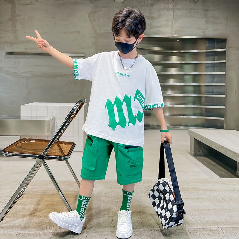 男童套装夏装2025新款儿童夏季运动中大童衣服短袖帅气炸街痞帅潮