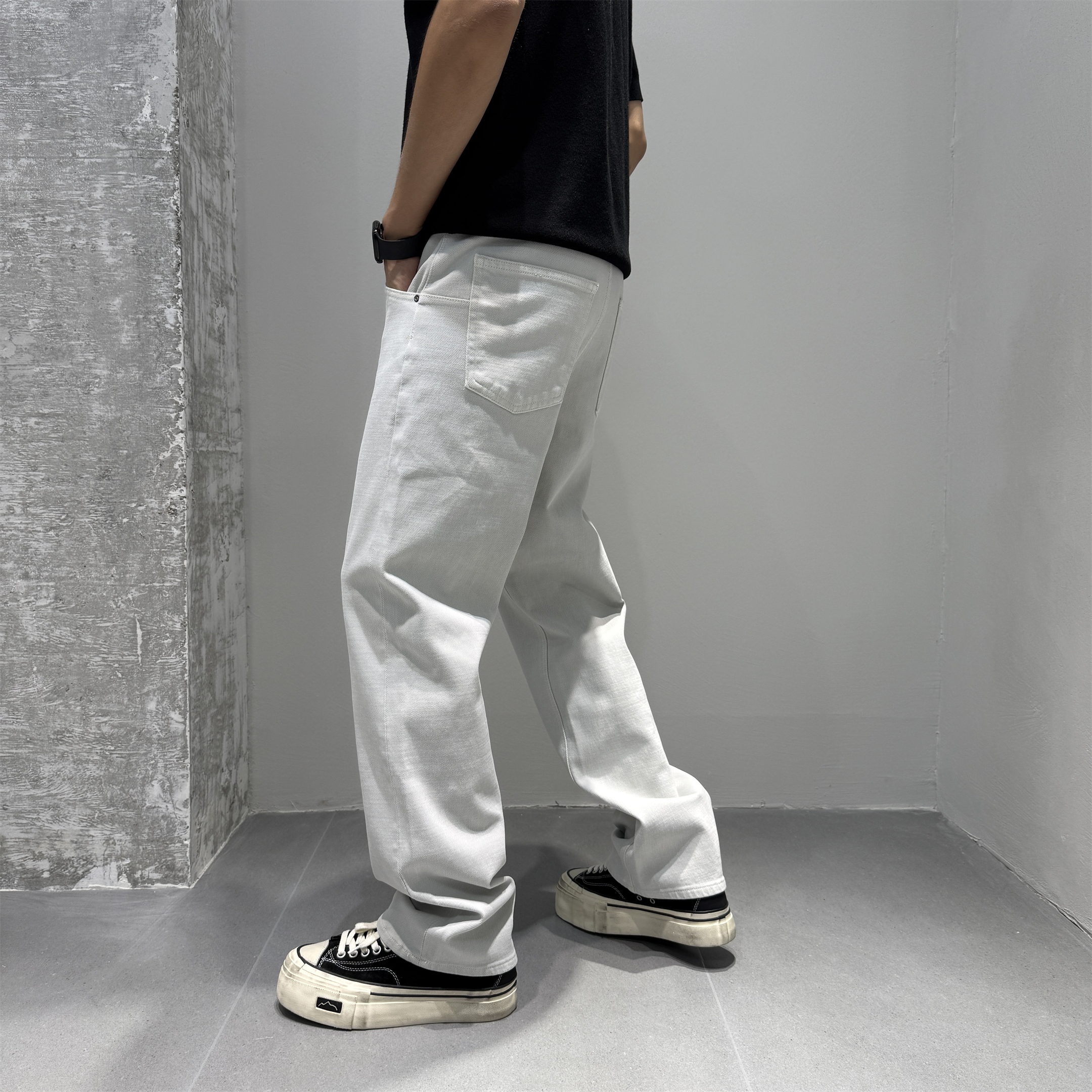 JIDERE斜纹肌理丹宁原色牛仔裤