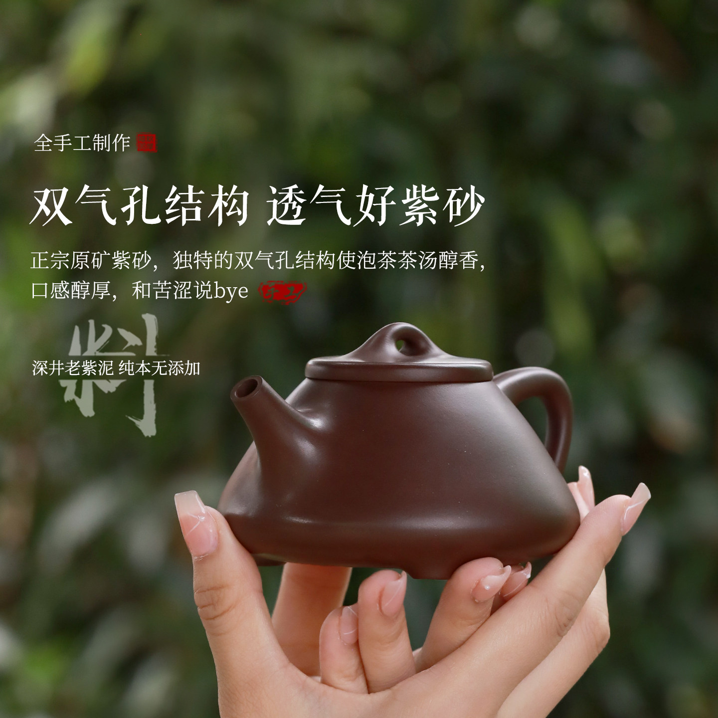 原矿深井老紫泥纯手工子冶石瓢壶