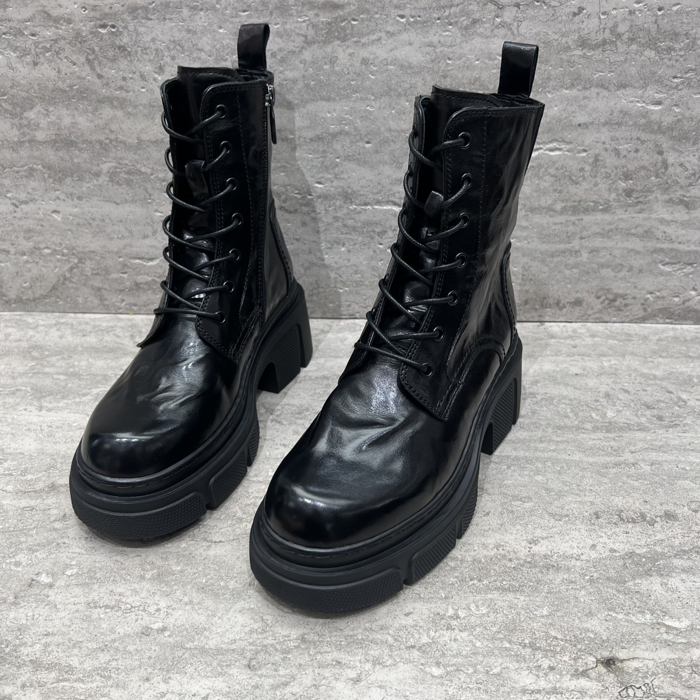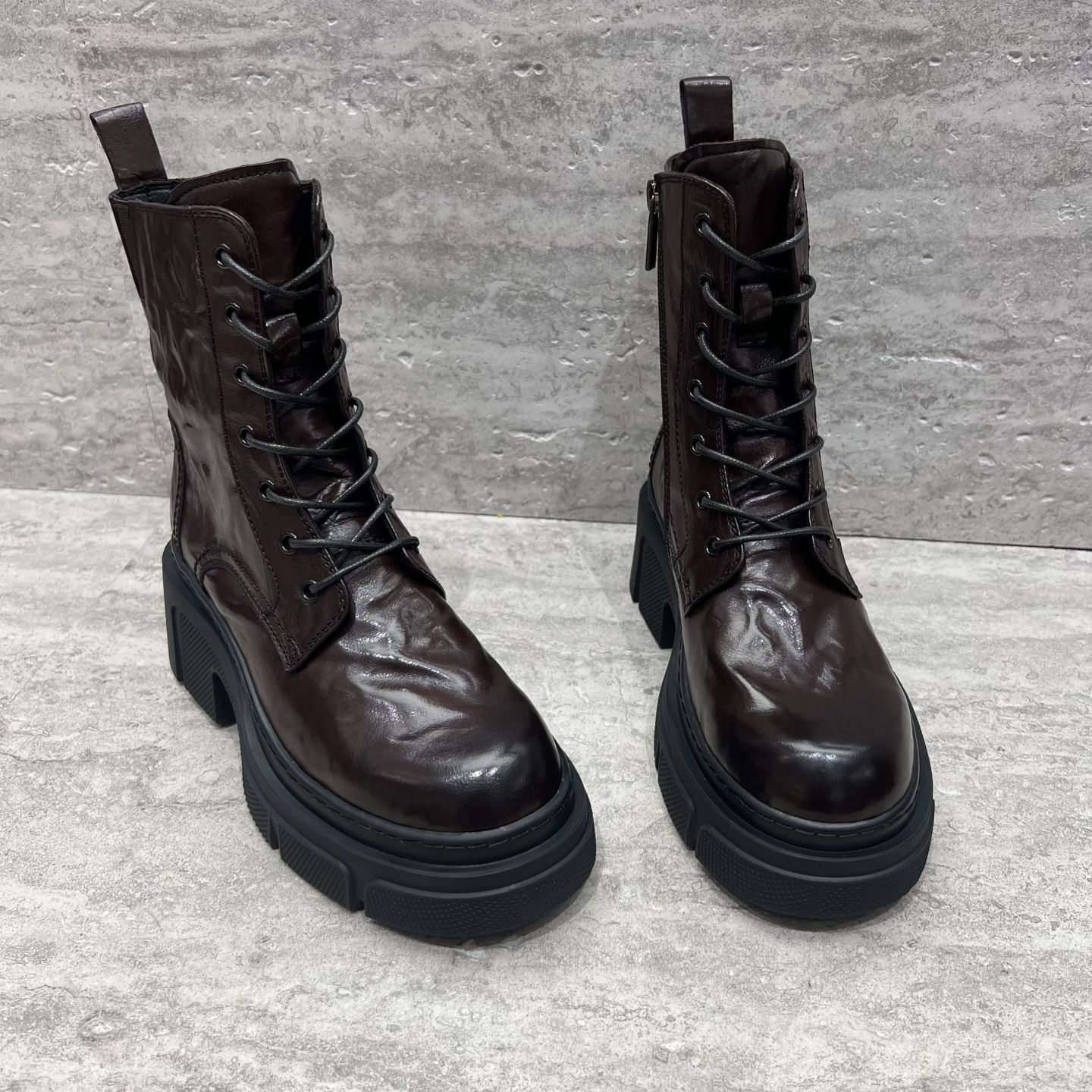 先锋名典女鞋2025秋季新款欧货真皮粗跟厚底系带马丁靴英伦风短靴
