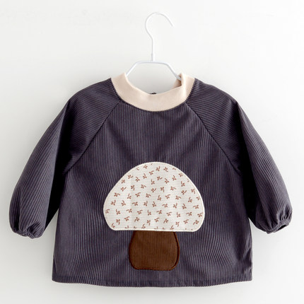 宝宝罩衣长袖防水秋冬吃饭儿童反穿衣灯芯绒新款男童婴儿外出围兜