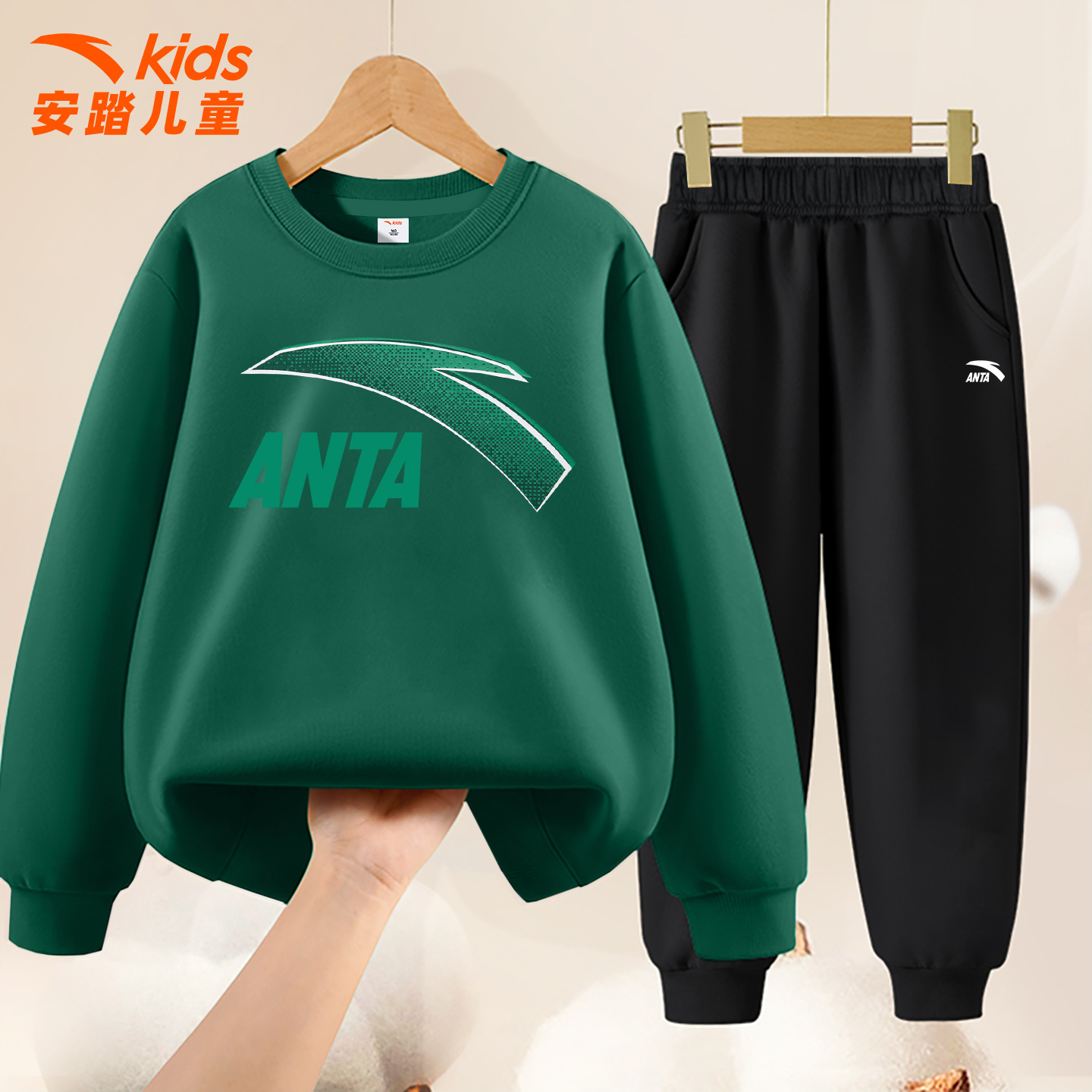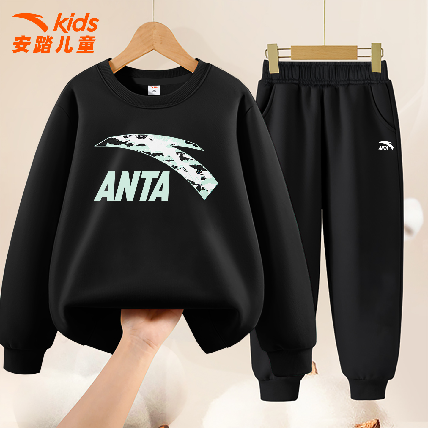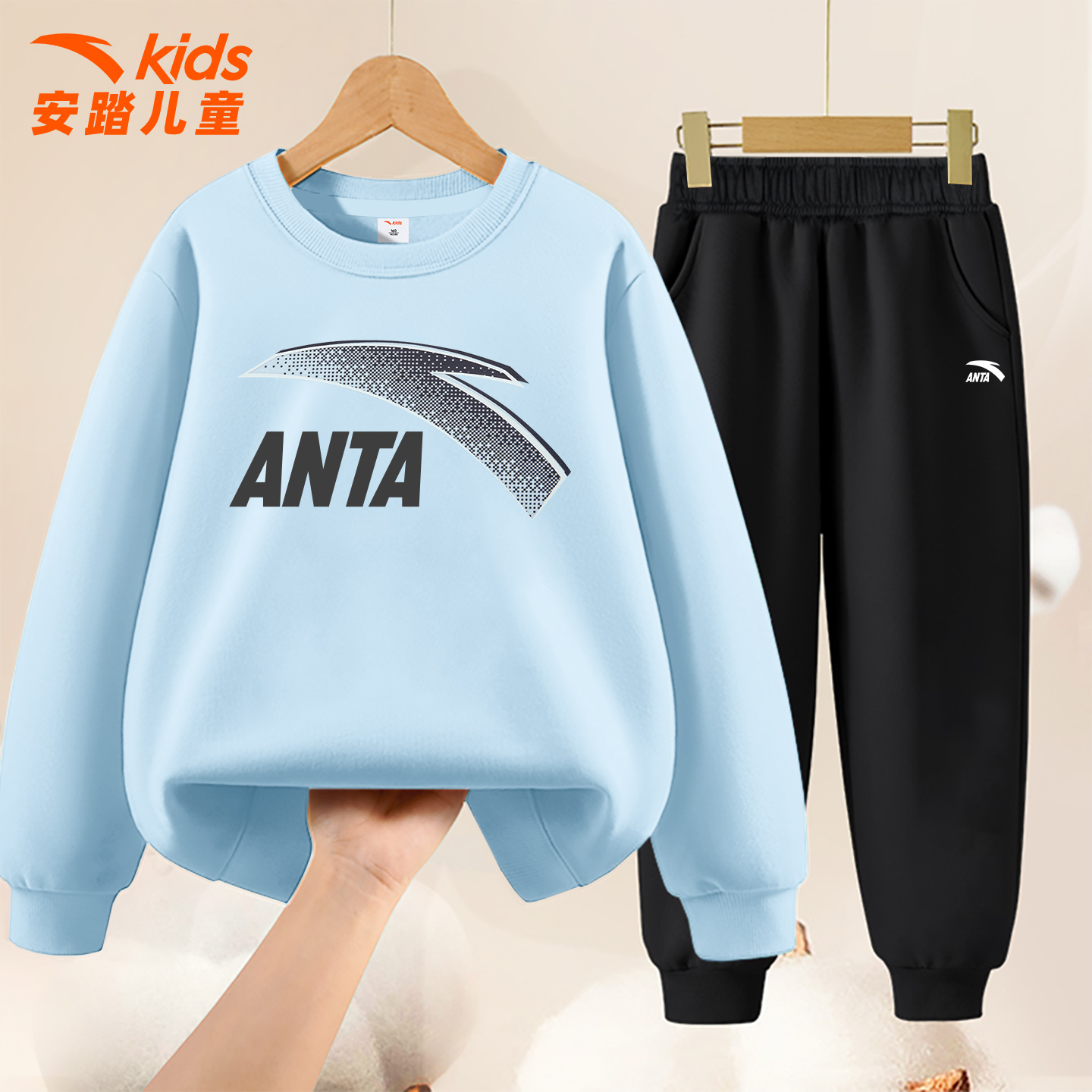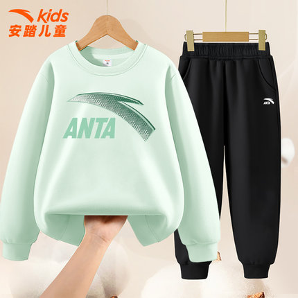 安踏童装儿童卫衣套装男童2025秋冬季新款圆领中大童百搭运动服男