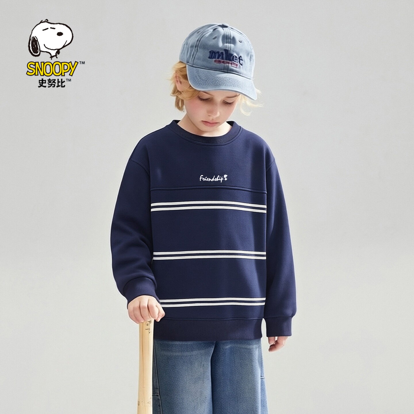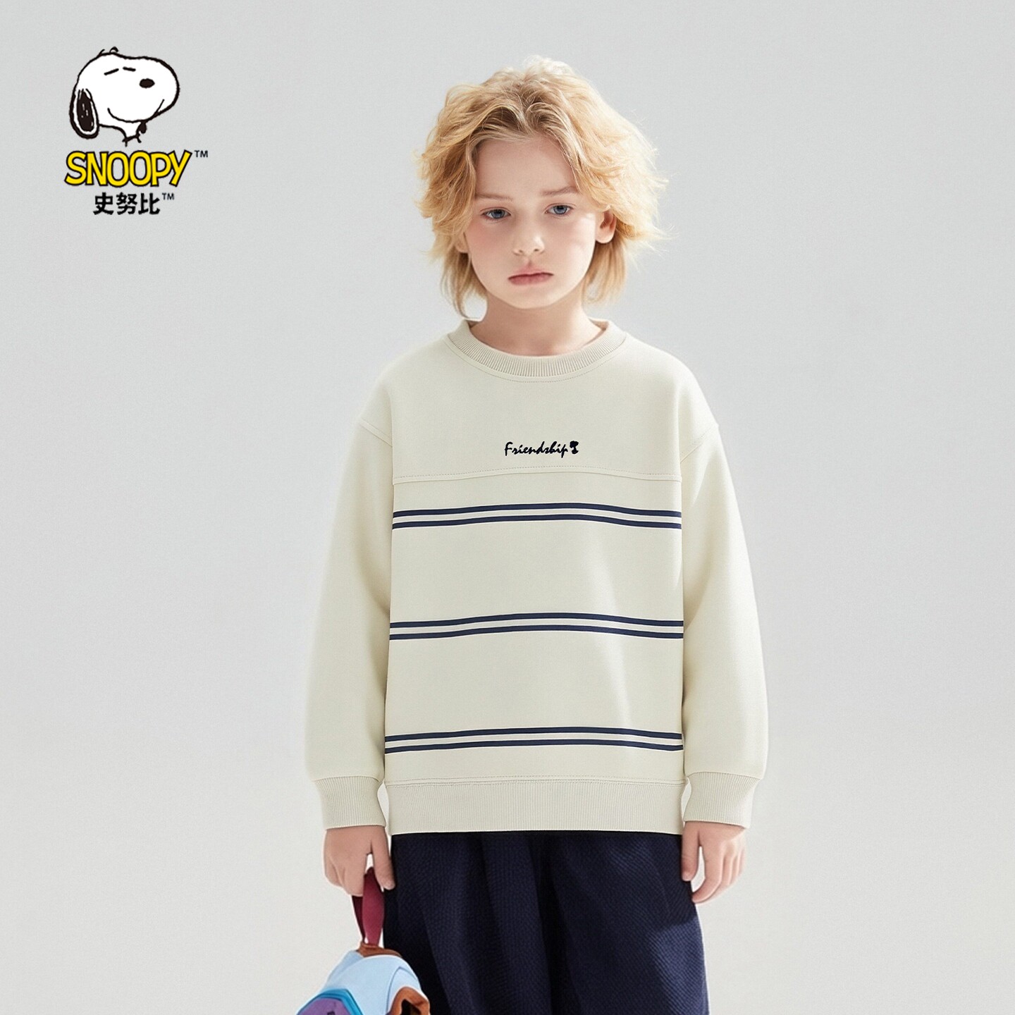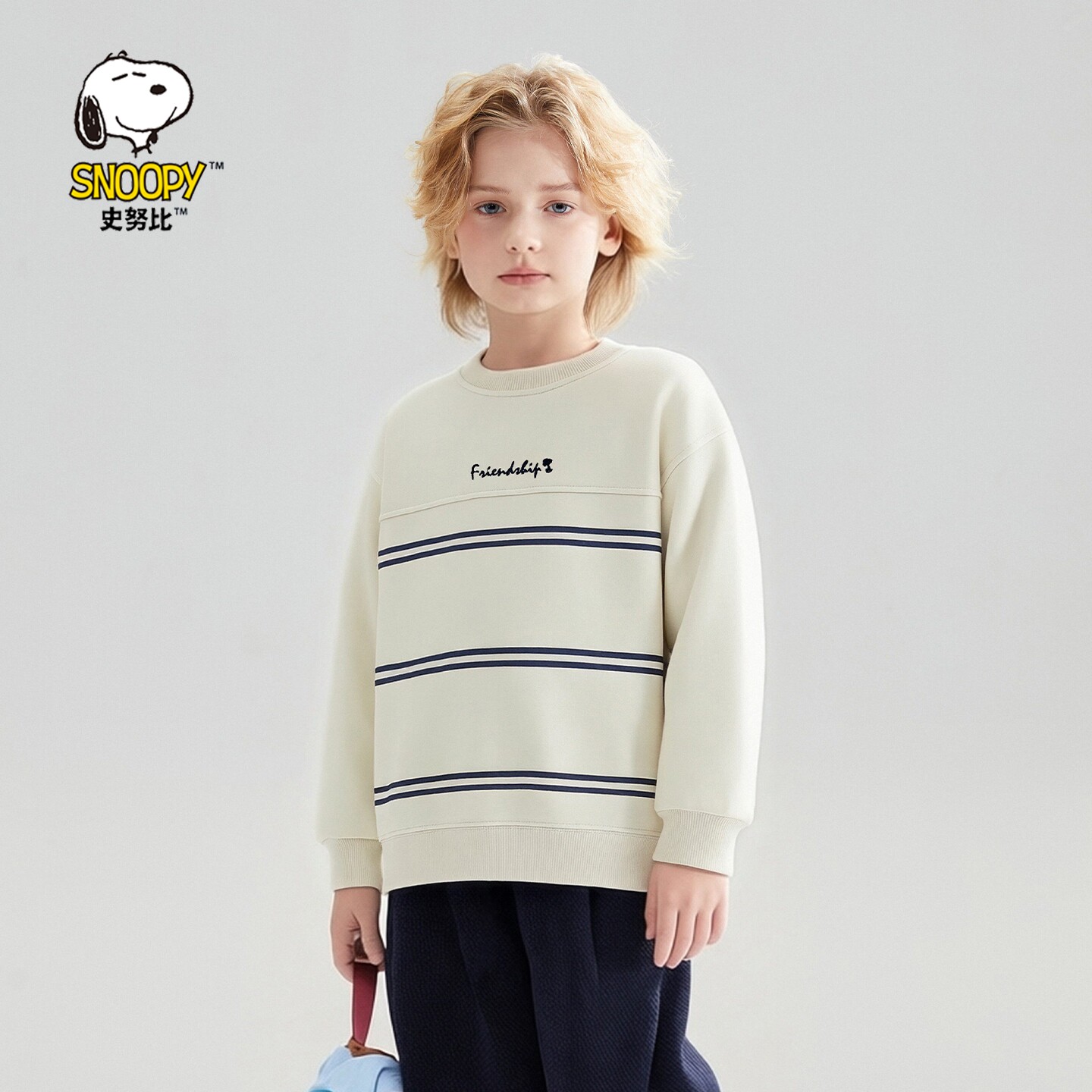 史努比童装男童圆领卫衣条纹长袖