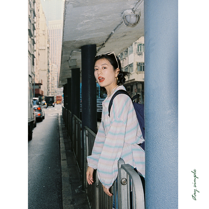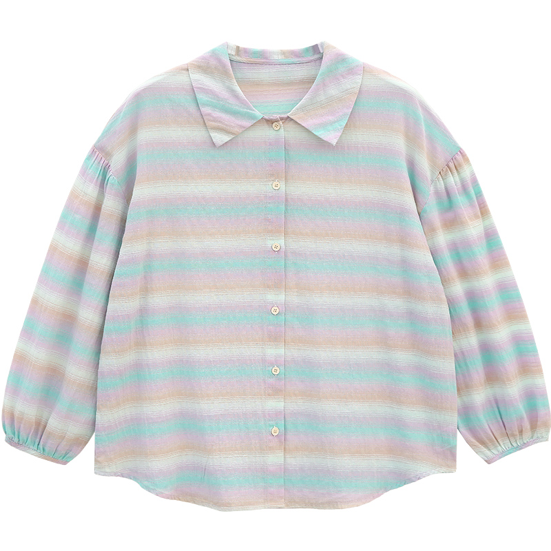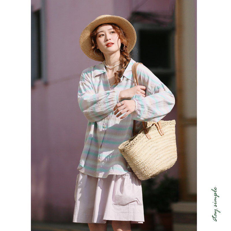 花吉B716芋泥紫宽松长袖条纹衬衫女2025新款春休闲学院风衬衣