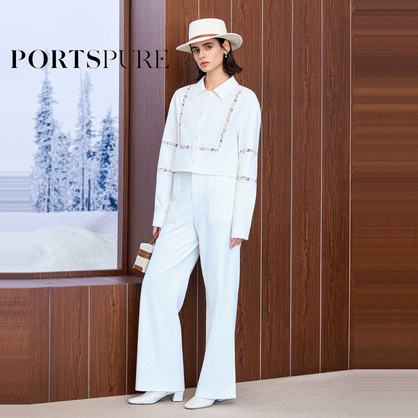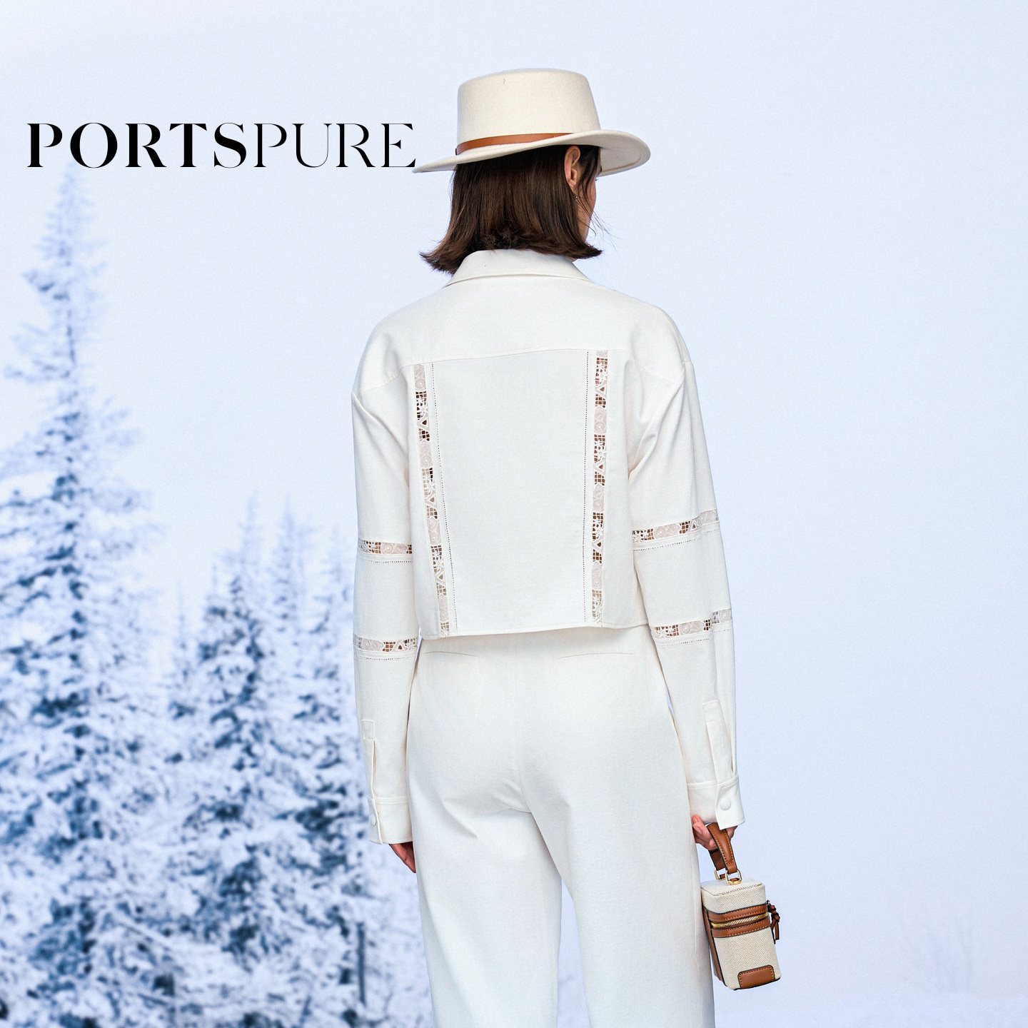 商场同款 宝姿PORTSPURE女装2025秋冬新品优雅通勤蕾丝短夹克外套