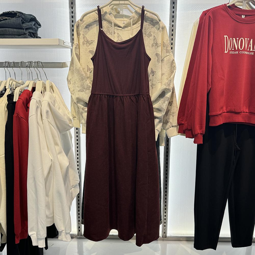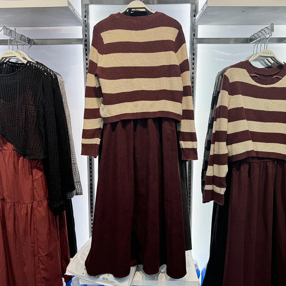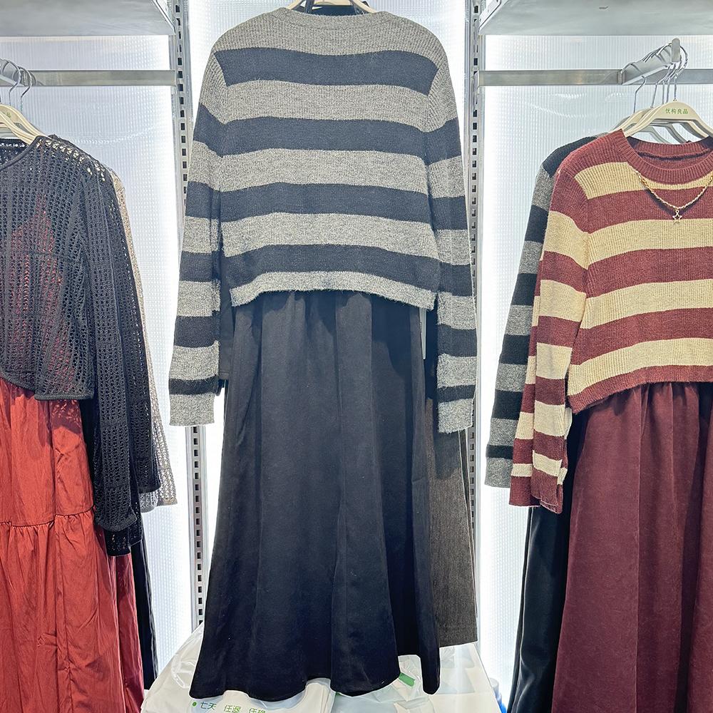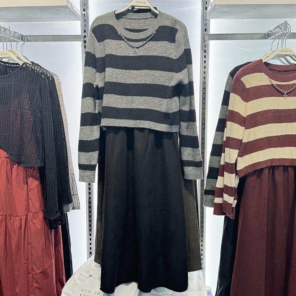 优构良品秋季新款女生两件套吊带针织毛衣时尚套装裙韩版连衣裙
