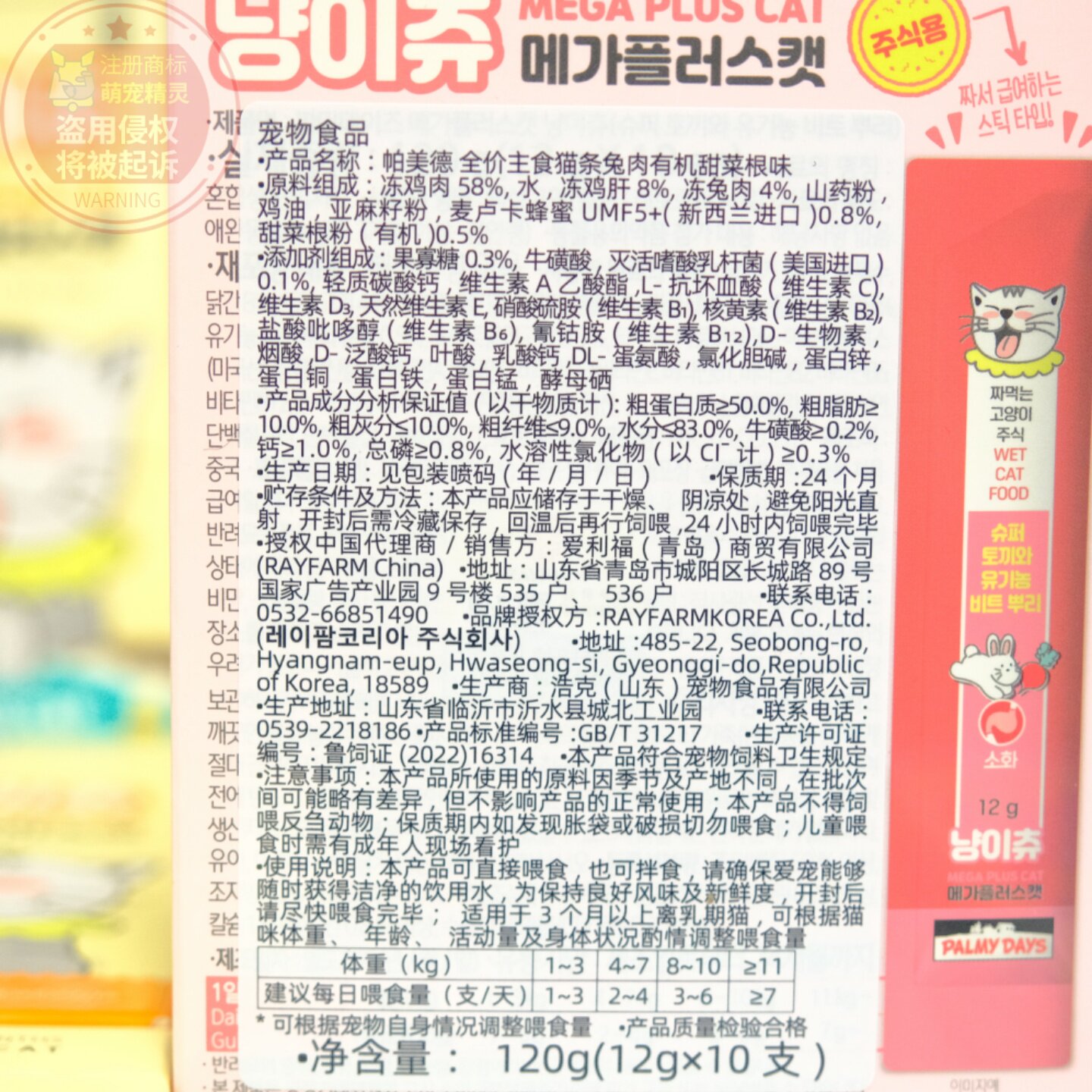帕美德全价主食猫条乳鸽鲜肉