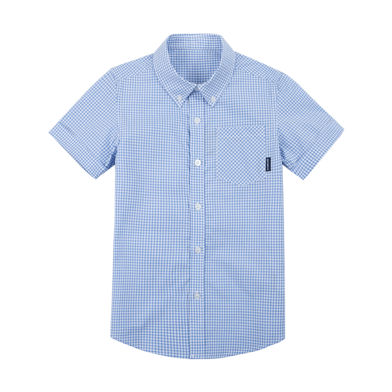 伊顿纪德校服 男童短袖衬衫夏季儿童浅蓝格子衬衣16C102