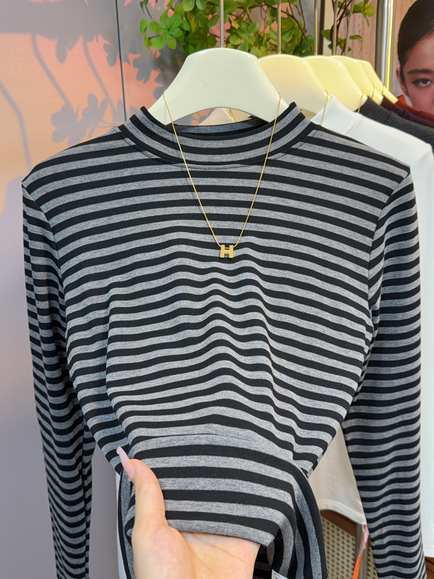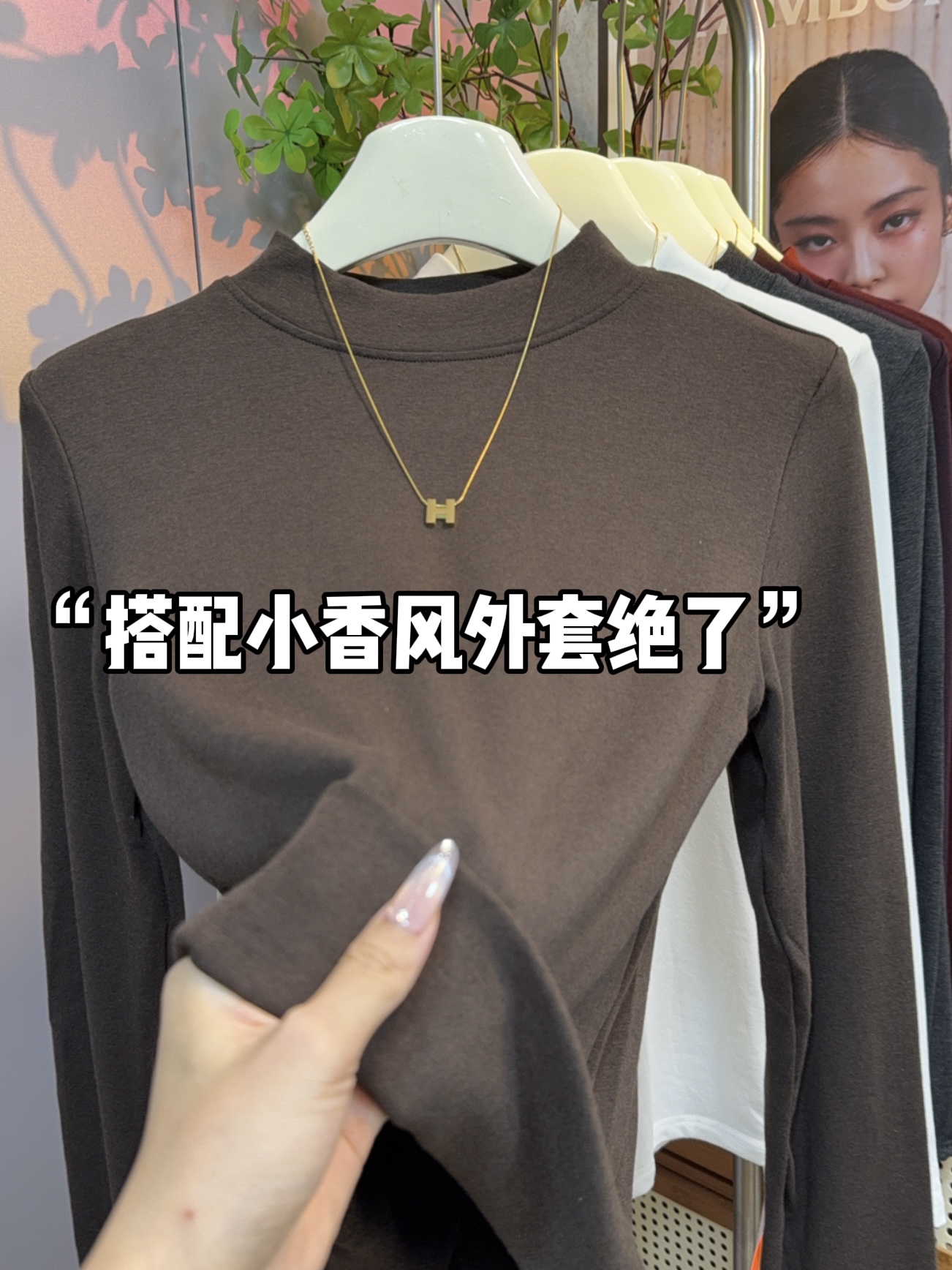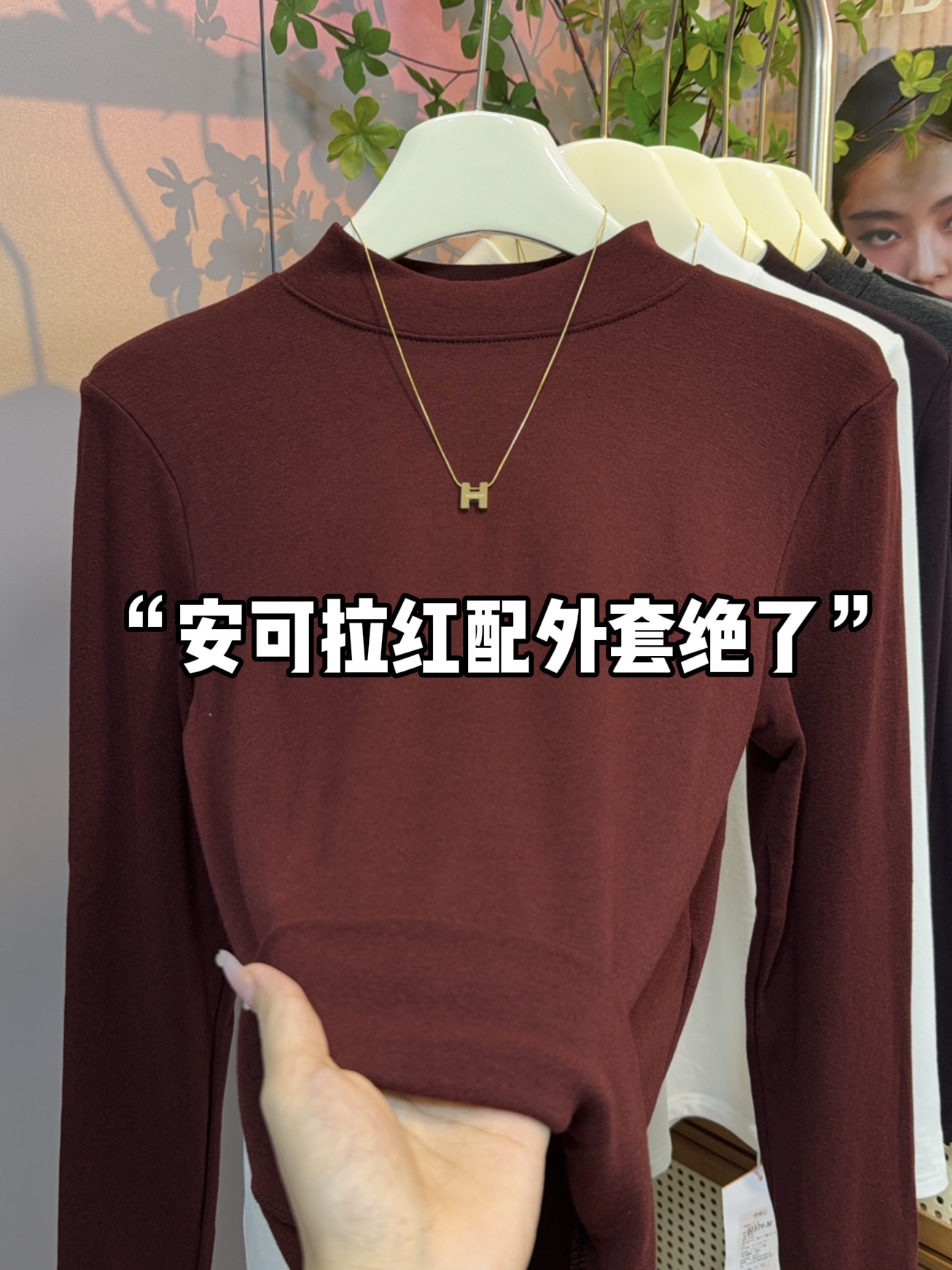 2025秋冬新款韩版百搭长袖修身显瘦酱紫色T恤女立领打底衫上衣潮