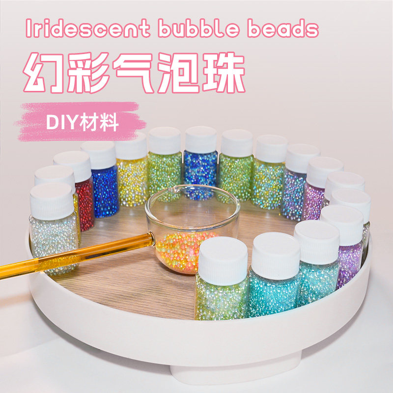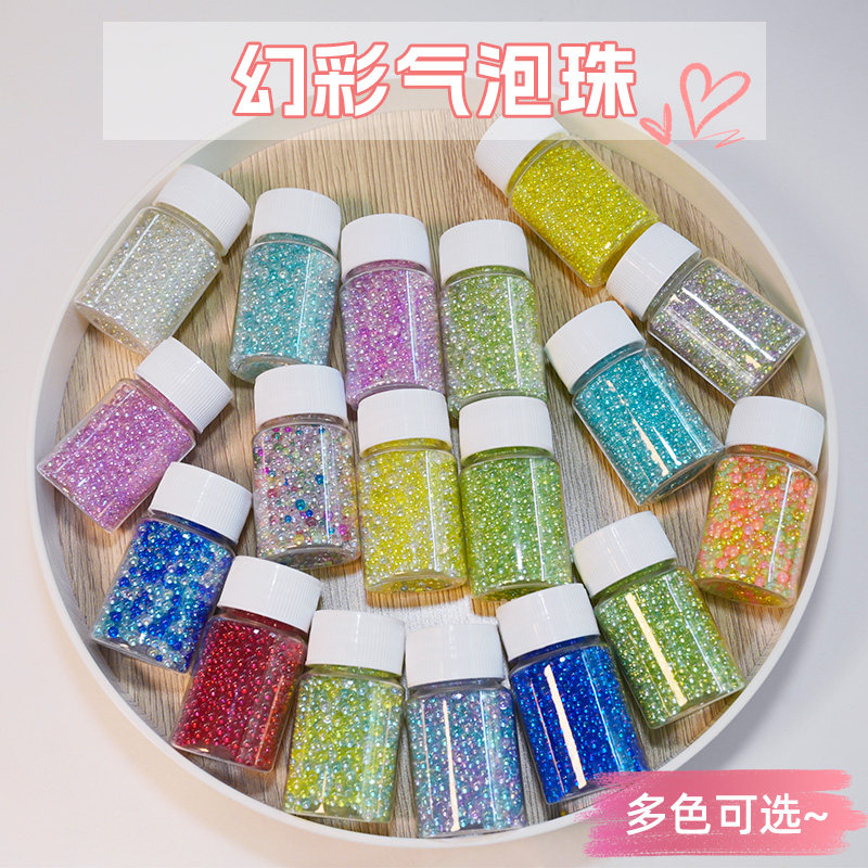 幻彩人鱼无孔气泡珠大小混合水晶滴胶捏捏美甲玻璃珠流麻填充装饰
