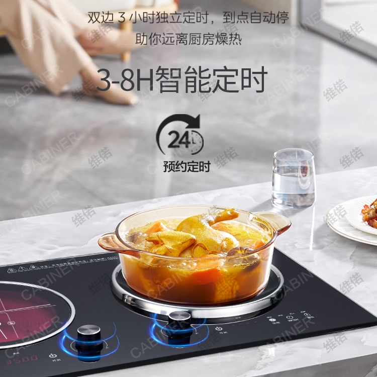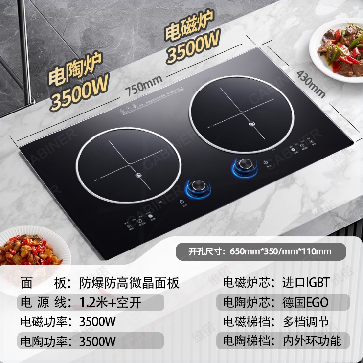 炉双灶头嵌入式家用电陶炉一平一凹电磁灶台3500W大功率猛火电磁