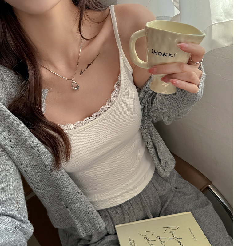 莫代尔纯欲白色蕾丝打底小背心吊带女内搭春夏季设计感可外穿