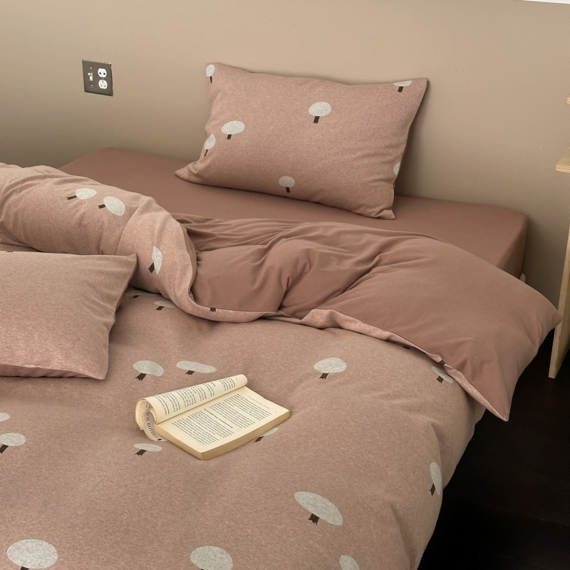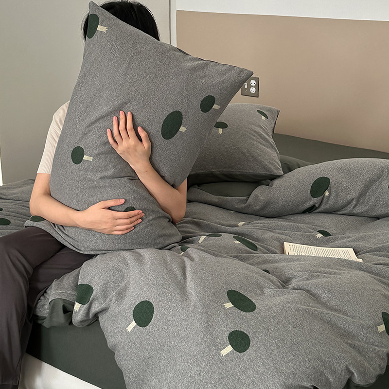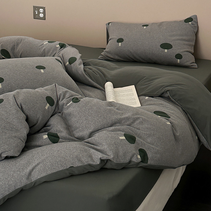 小蘑菇|A类复古针织棉色织提花天竺棉四件套长绒棉色纺裸睡被套