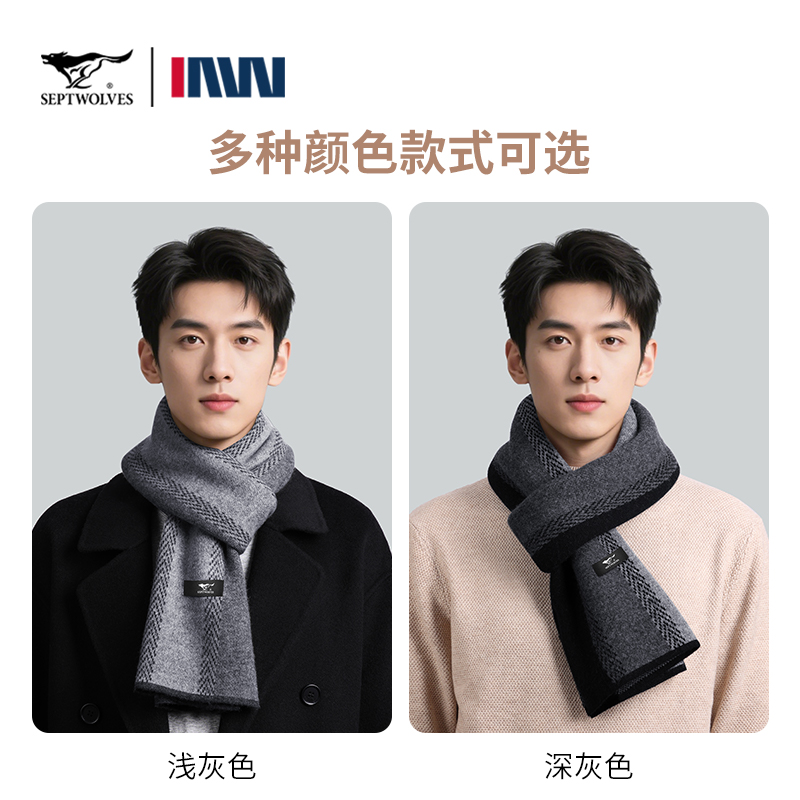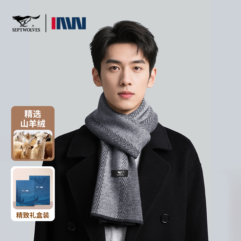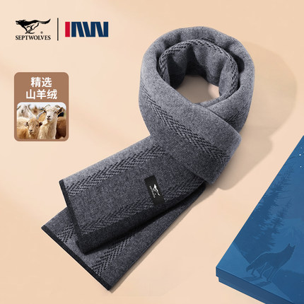 七匹狼山羊绒围巾男士新款冬季加厚保暖送男朋友生日礼物羊毛围脖