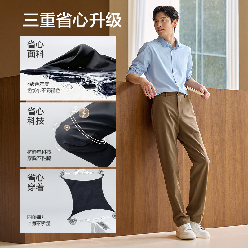 【省心西裤】九牧王25春新款阔腿西裤老钱风宽松cleanfit男长裤