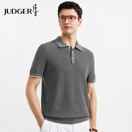 【10%桑蚕丝】庄吉针织短袖POLO衫男夏季肌理亚麻透气翻领半袖T恤