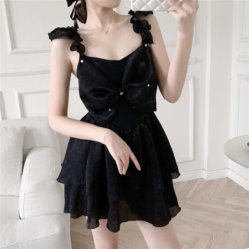 少女时间游泳衣女2024新款绝美泡温泉度假连体裙式遮肚显瘦高级感