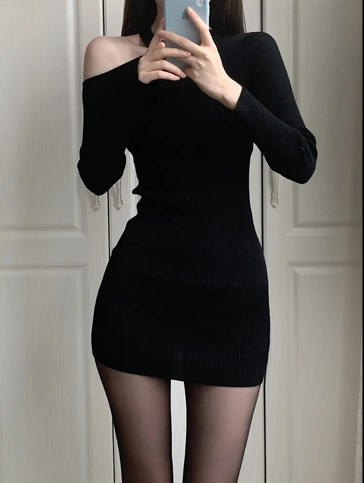 后妈包臀裙女配黑丝连衣裙辣妹御姐黑色套装纯欲性感紧身修身裙子
