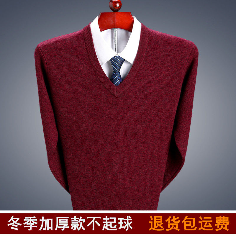 鄂尔多斯市羊绒衫男V领加厚100纯羊绒中老年鸡心领羊毛衫男士毛衣