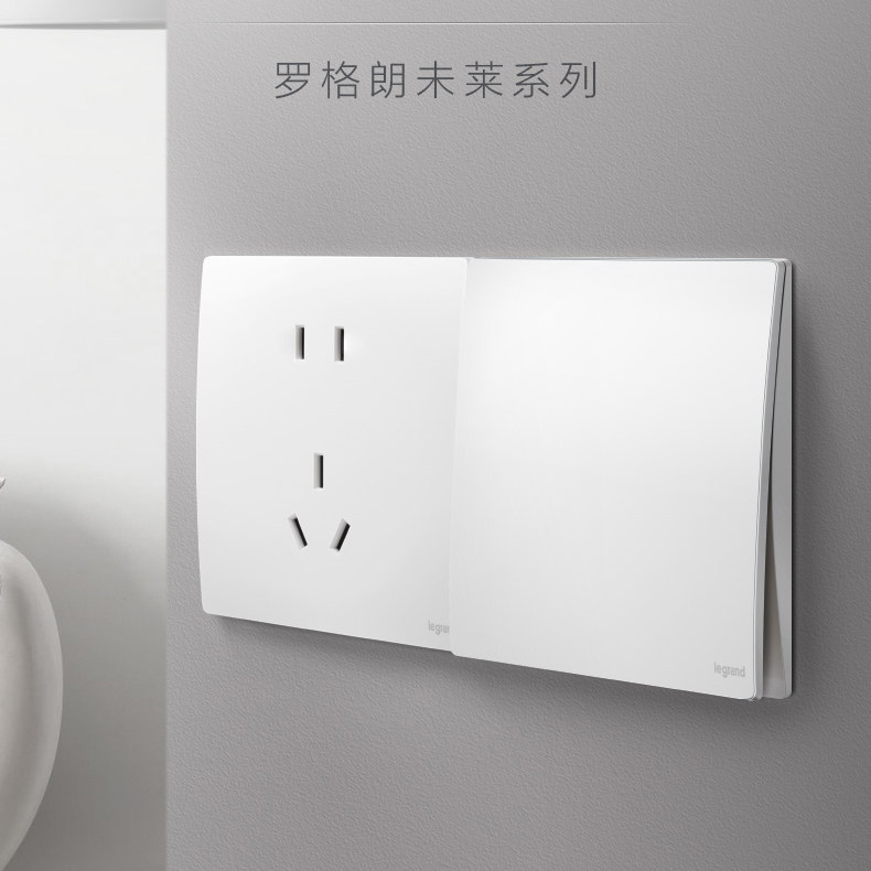 罗格朗开关插座家用超薄弧形面板未莱陶瓷白色五孔二三插暗装86型