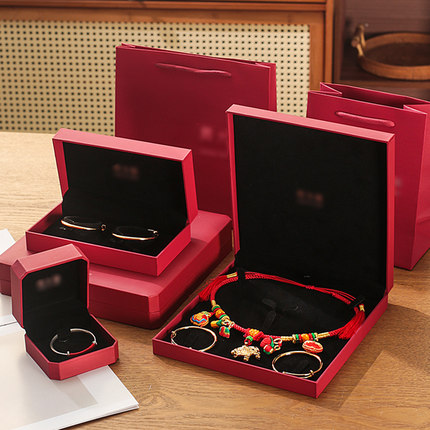 大福宝宝项圈盒摆台双镯盒满月百天金锁银手镯盒婴儿长命锁包装盒