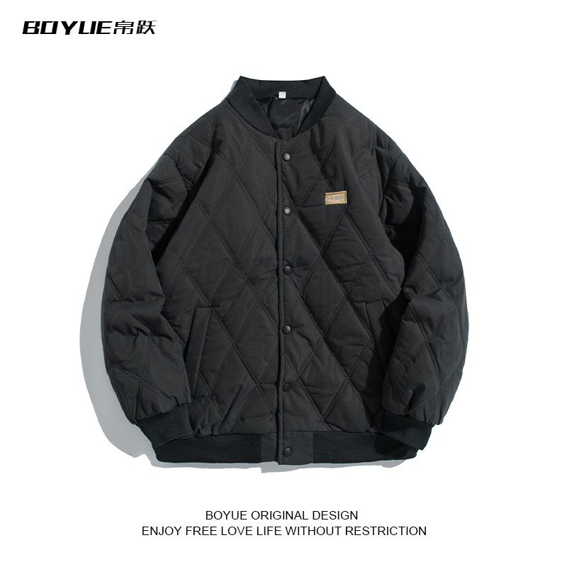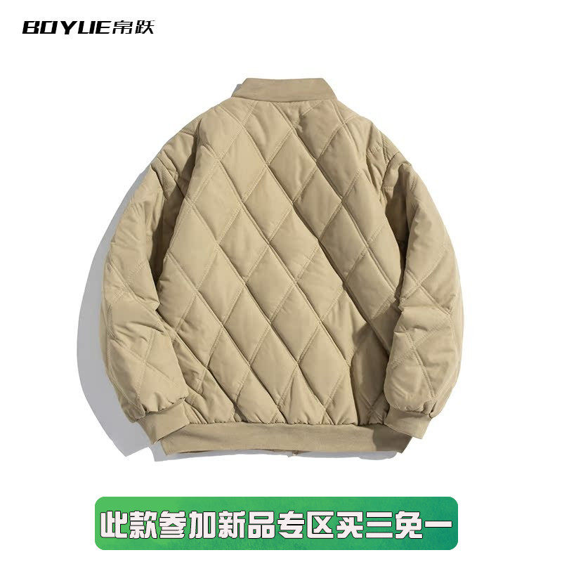 BOYUE帛跃冬季日系cityboy绣标菱形格棉服青少年男潮复古棒球棉衣