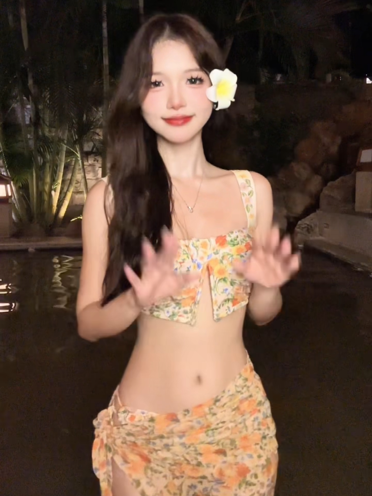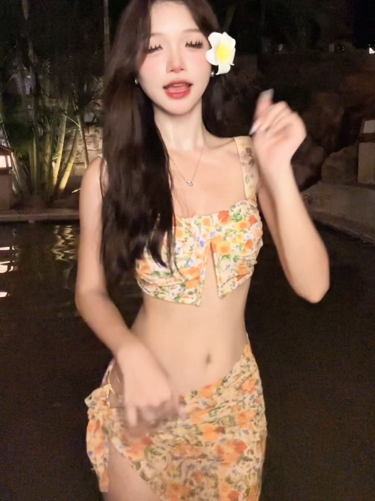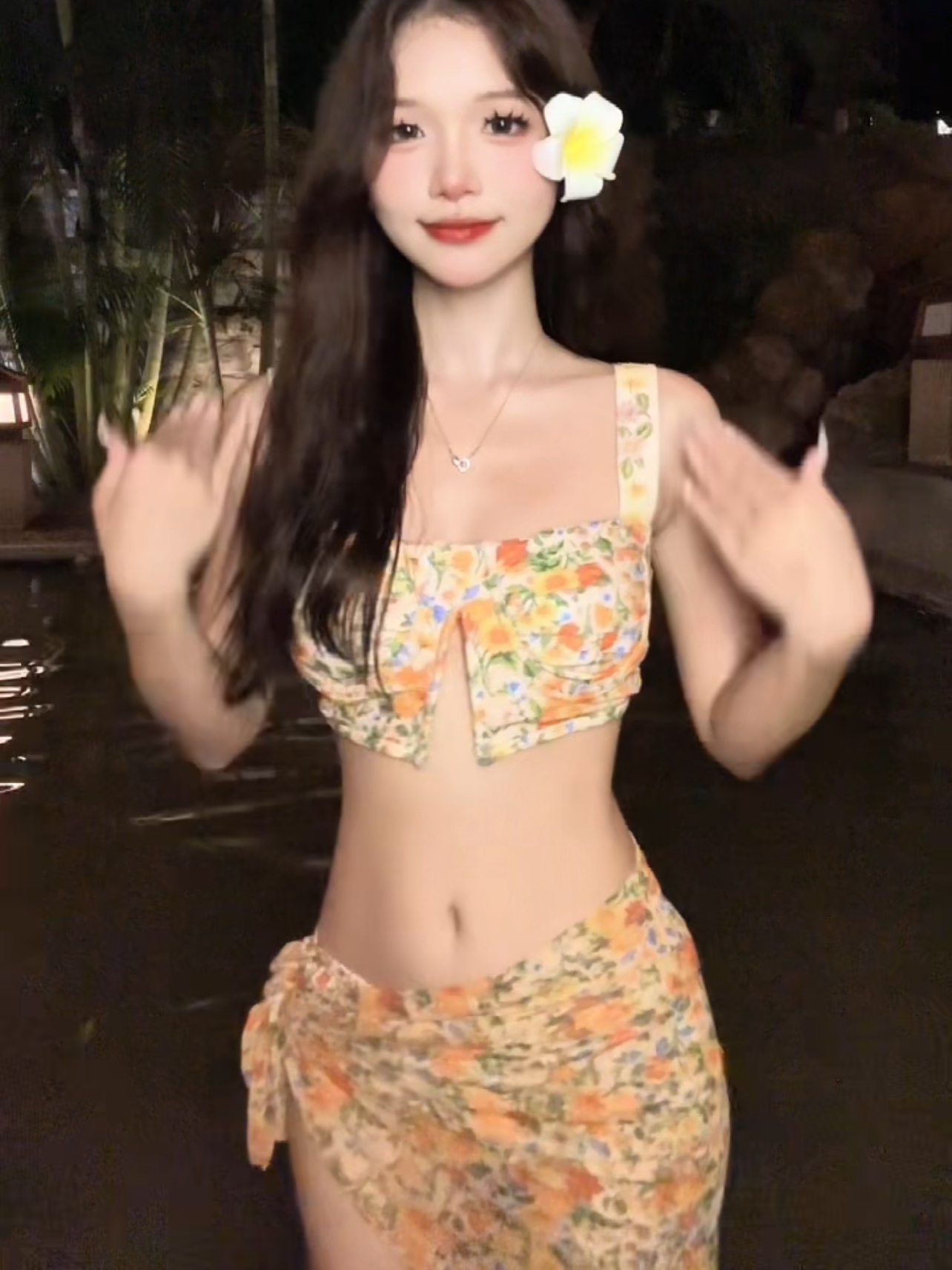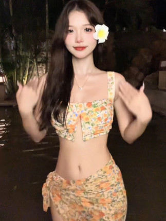 洛可可泳衣 2024夏泰国碎花泳衣女分体性感比基尼三件套小胸聚拢