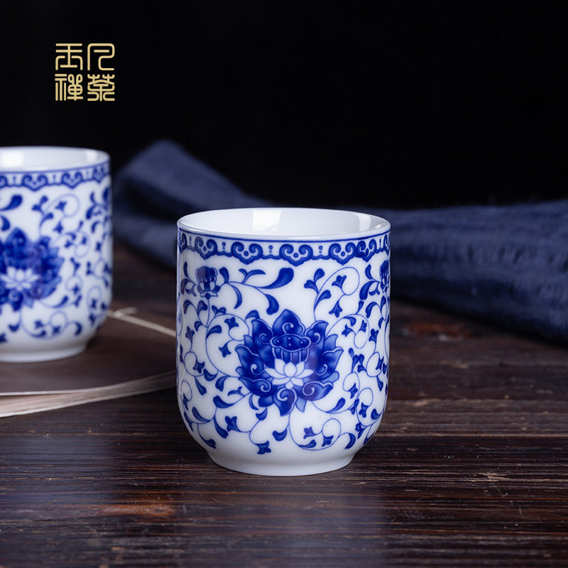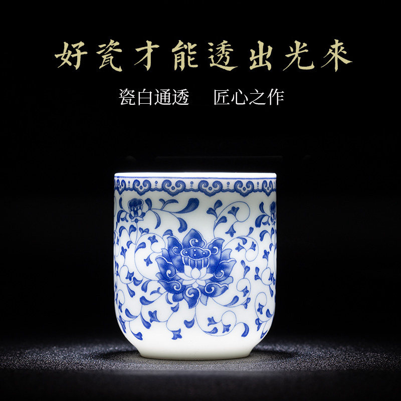 功夫茶具茶杯景德镇陶瓷青花水具单配单杯家用直筒喝茶杯品茗杯子