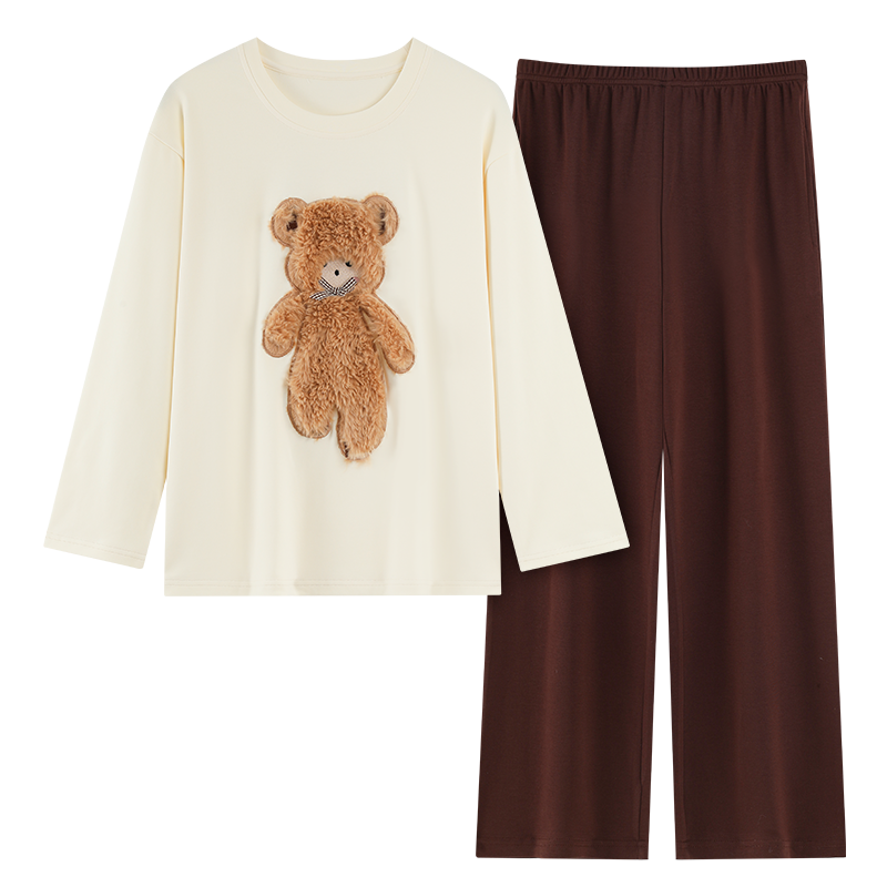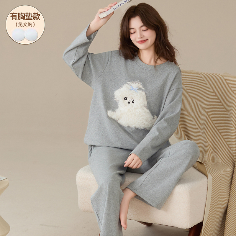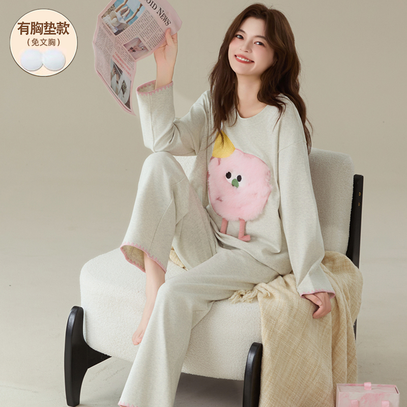 7A抗菌纯棉带胸垫秋季睡衣女款长袖加大码200斤家居服2025年新款