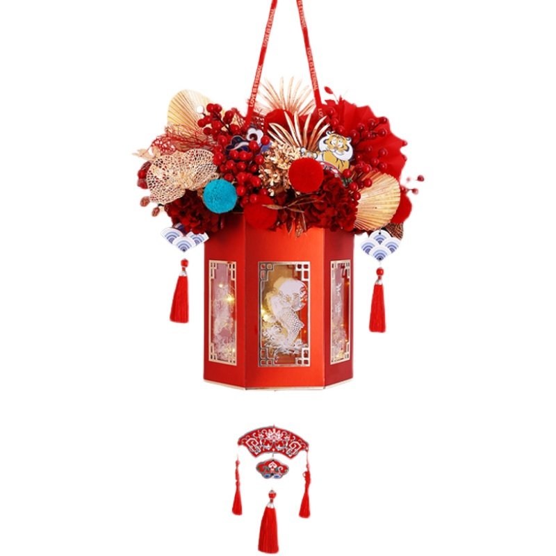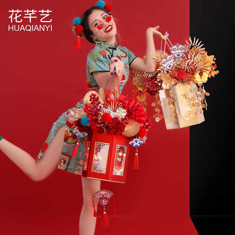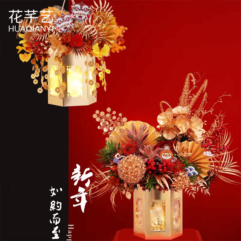 吉样如意丰登新年礼品盒抱抱桶年宵手提花盒子干花冬青鲜花插花桶