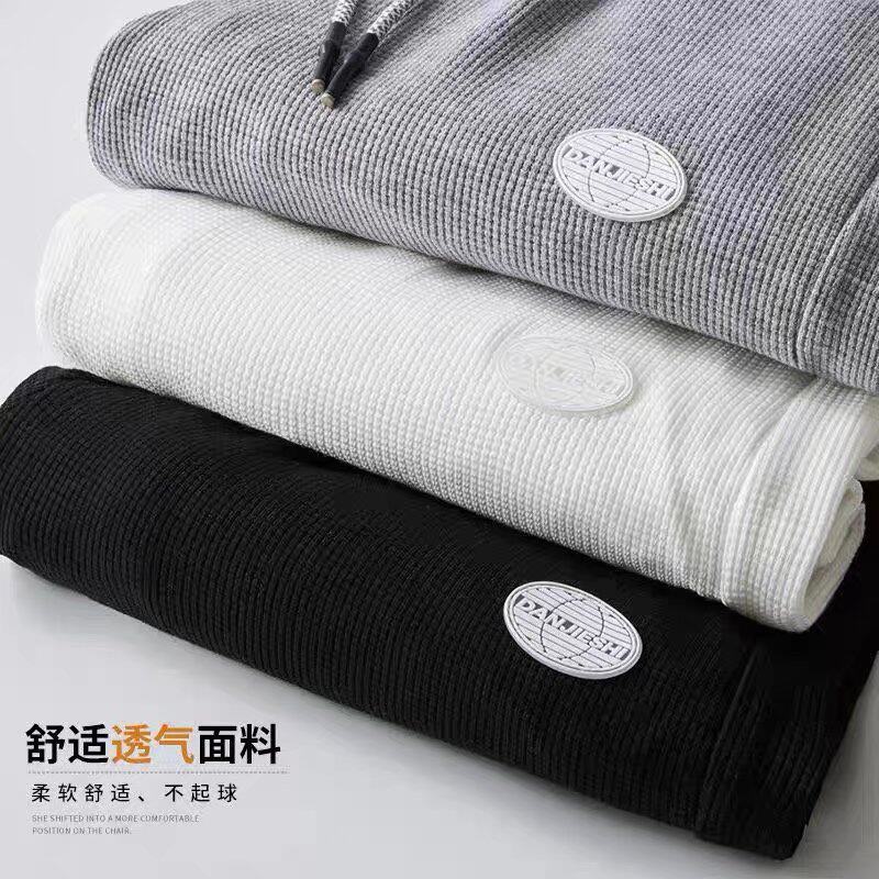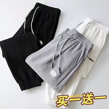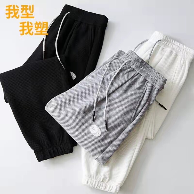 华夫格裤子男生薄款夏季九分休闲卫裤束脚青少年ins潮流运动9分裤