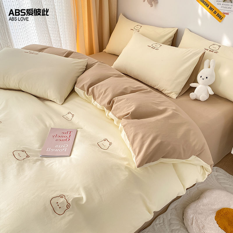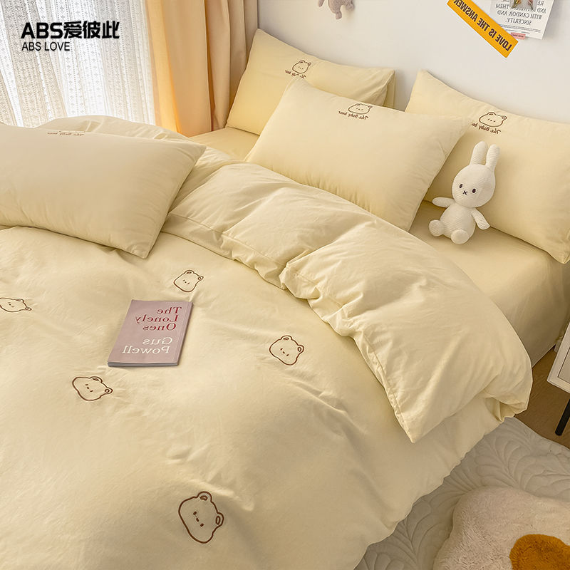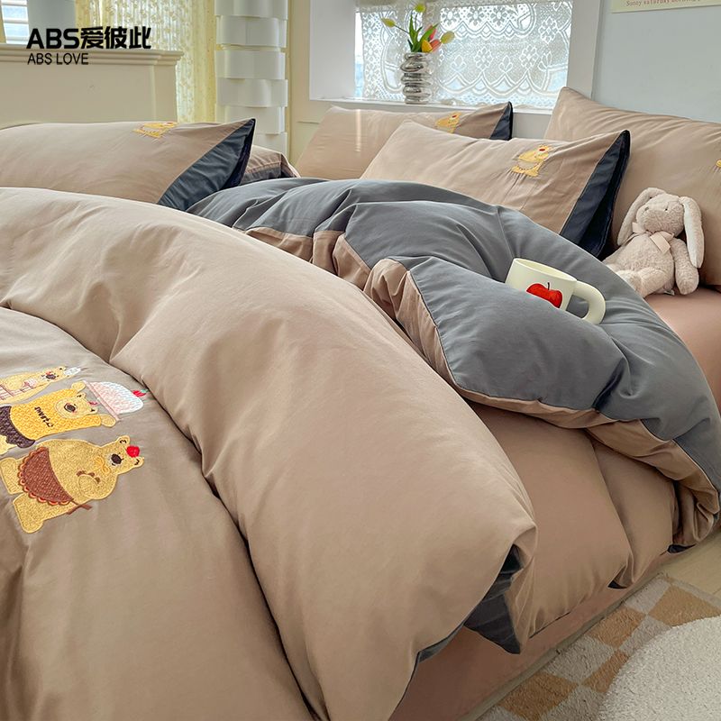 ABS爱彼此卡通全棉四季床上四件套绣花被套宿舍床单三件套单床品
