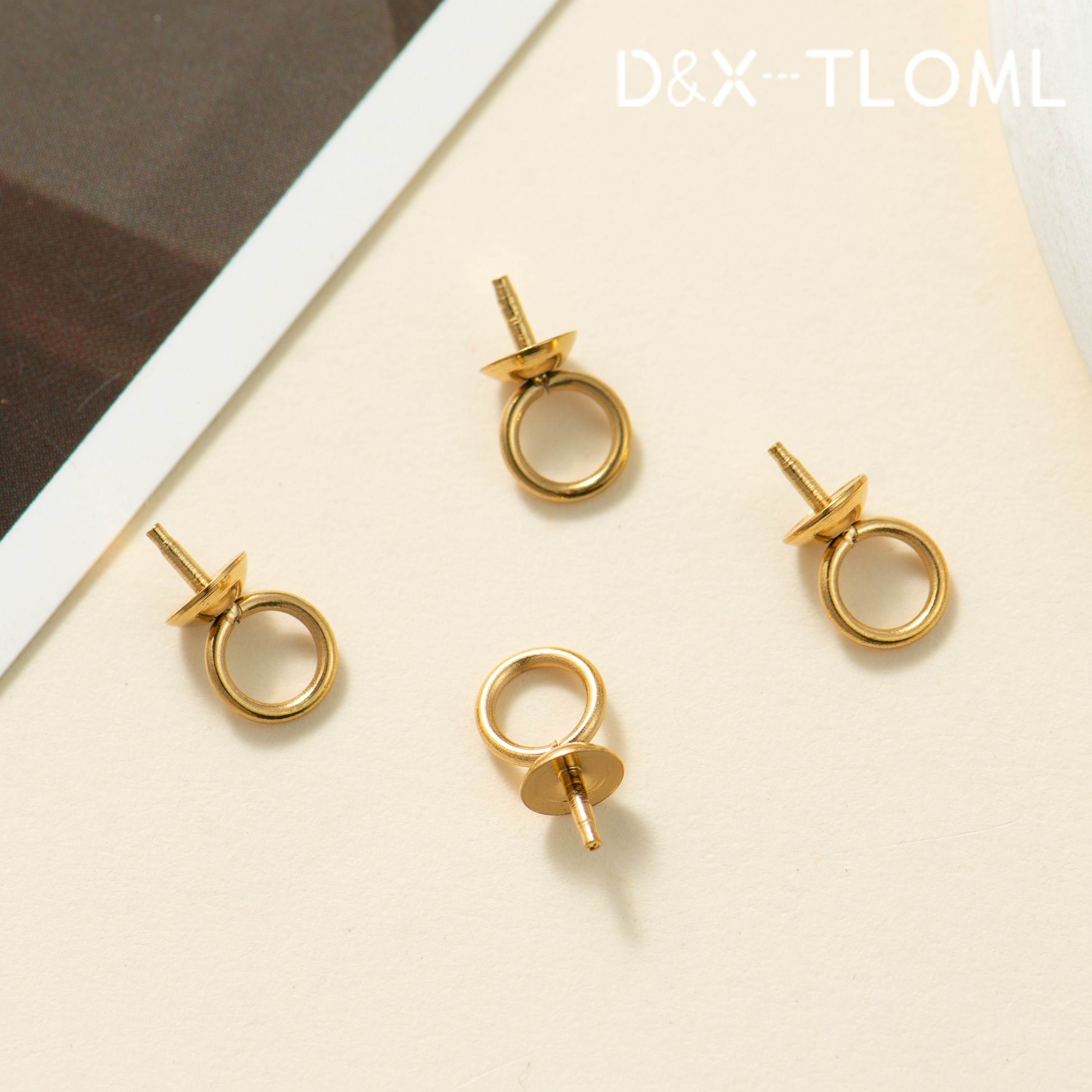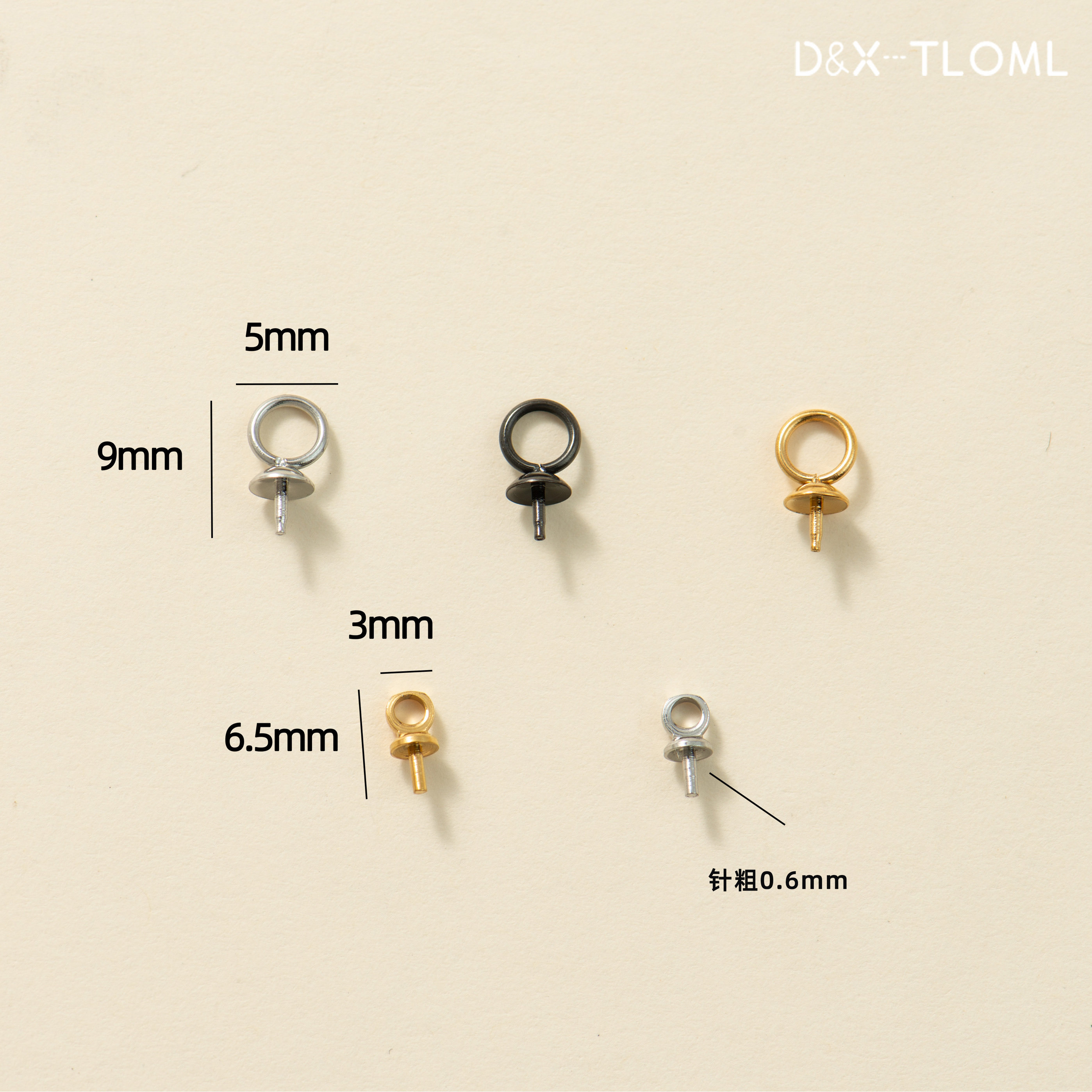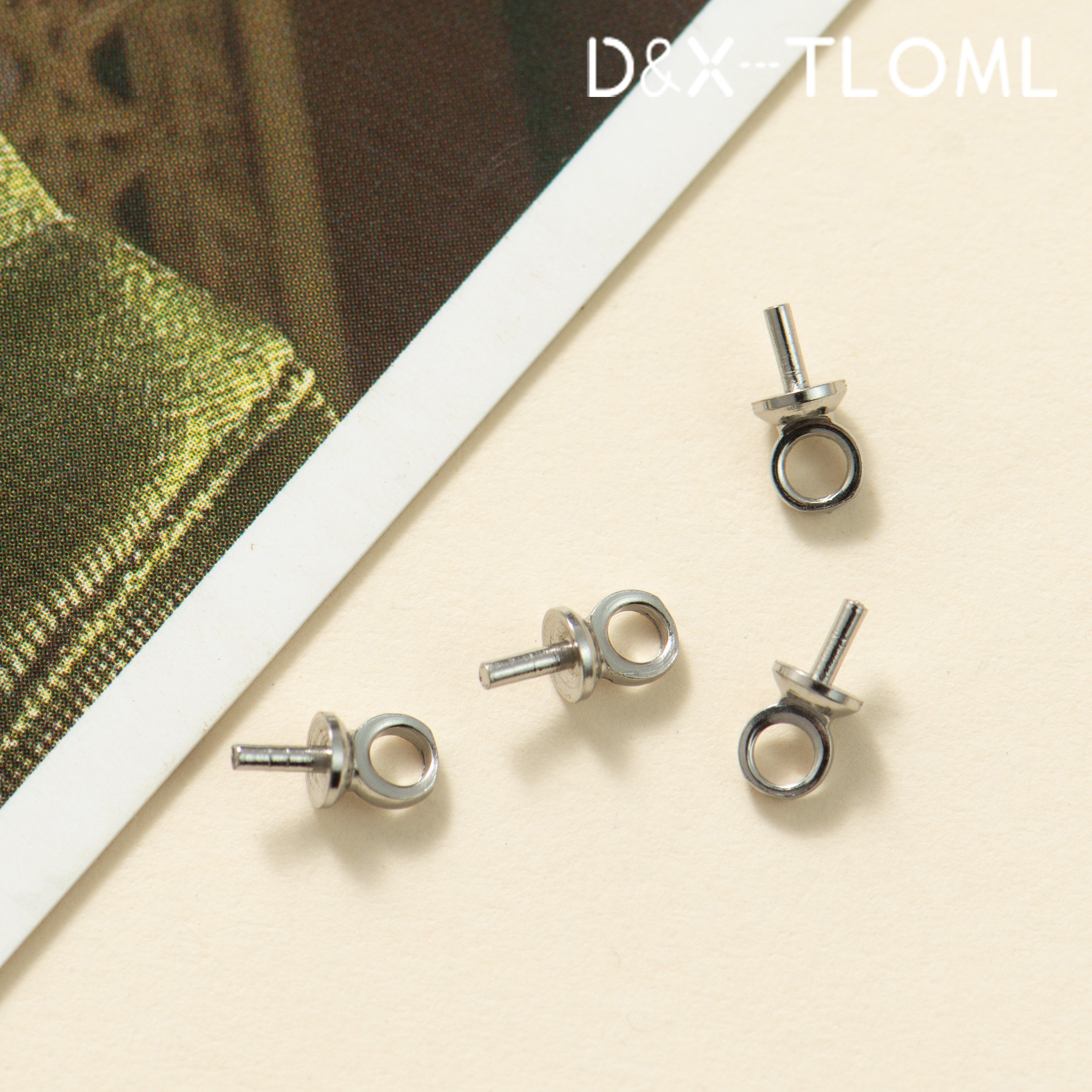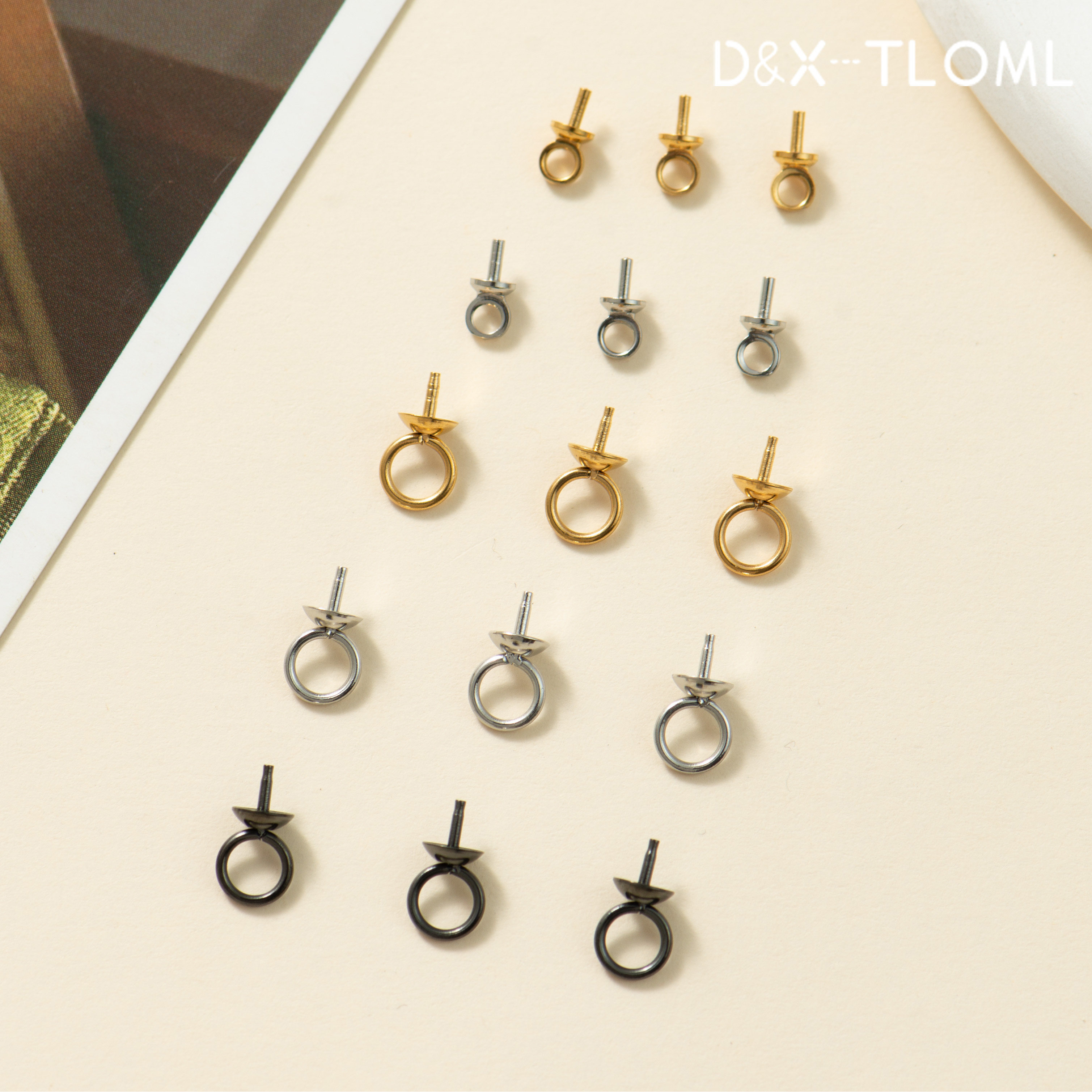 东夏饰品 钛钢精抛常规吊坠羊眼钉 炉内电镀18K珍珠空托珠帽花托