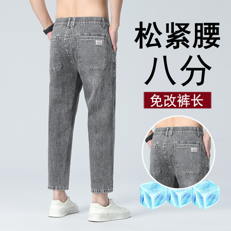 松紧腰男士牛仔裤八分夏季超薄男潮流2025新款直筒修身9分休闲裤