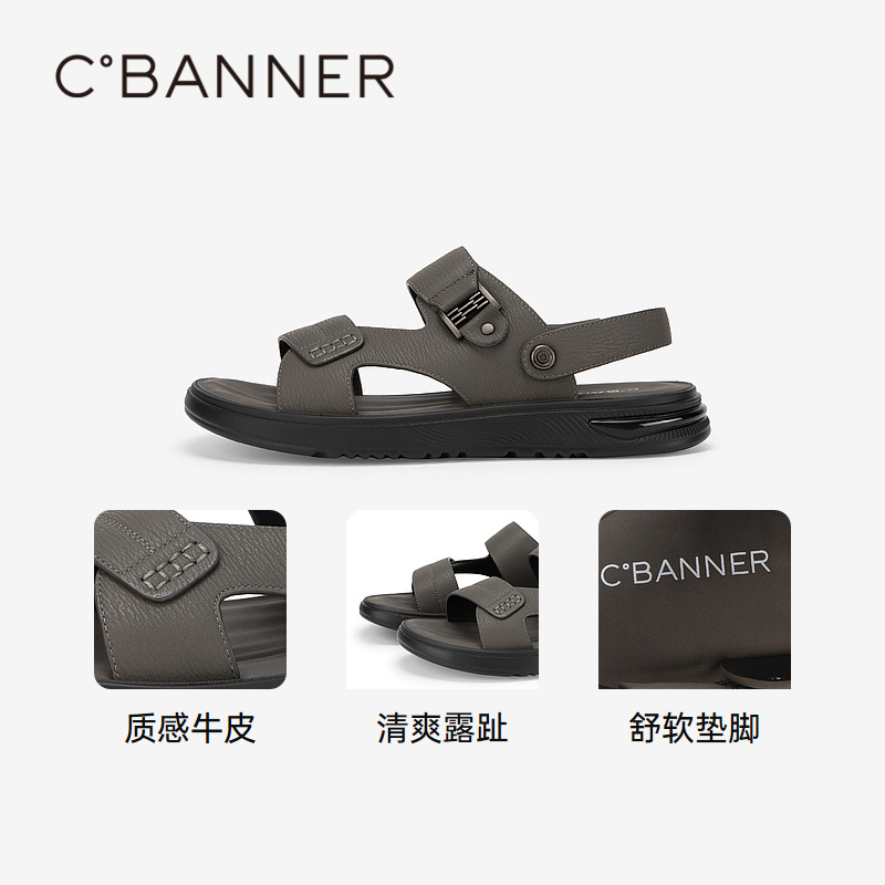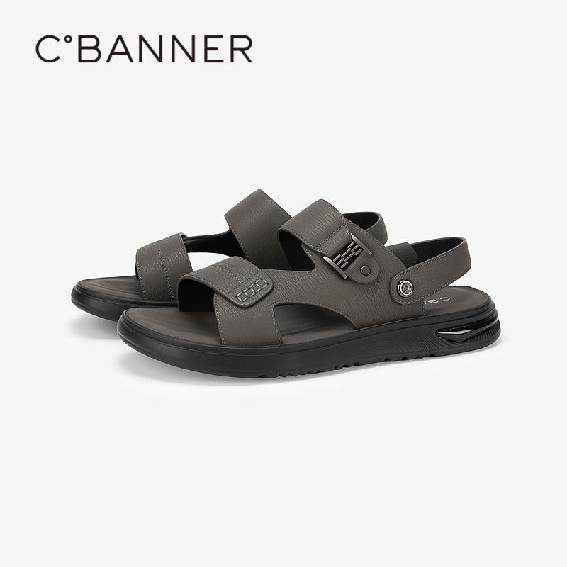 千百度男鞋休闲凉鞋增高沙滩度假海边真皮两穿凉拖鞋百A24312609