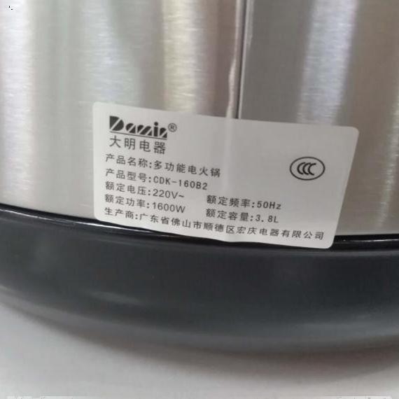 大明电器电火锅3.8L1600W黑色不粘内胆多功能煮蒸锅家用拔杆式