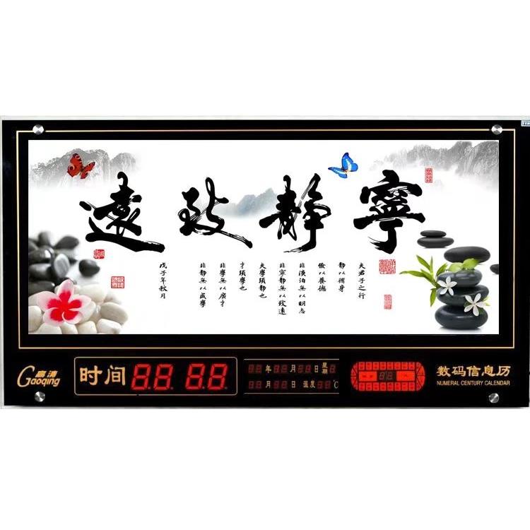 led万年历数码电子钟表客厅大风景山水画日历钟挂钟壁挂墙上礼品